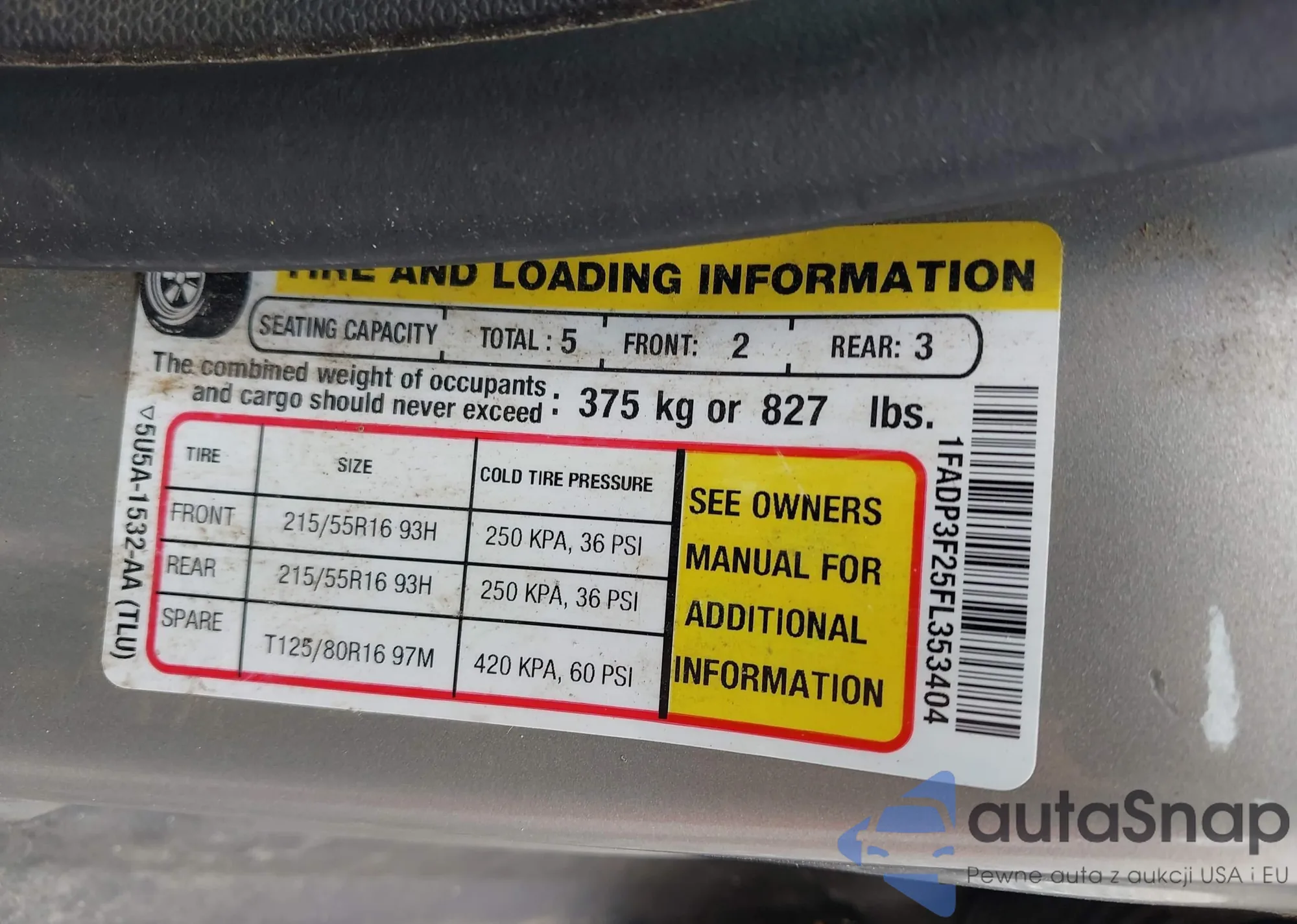 • VIN 1FADP3F25FL353404