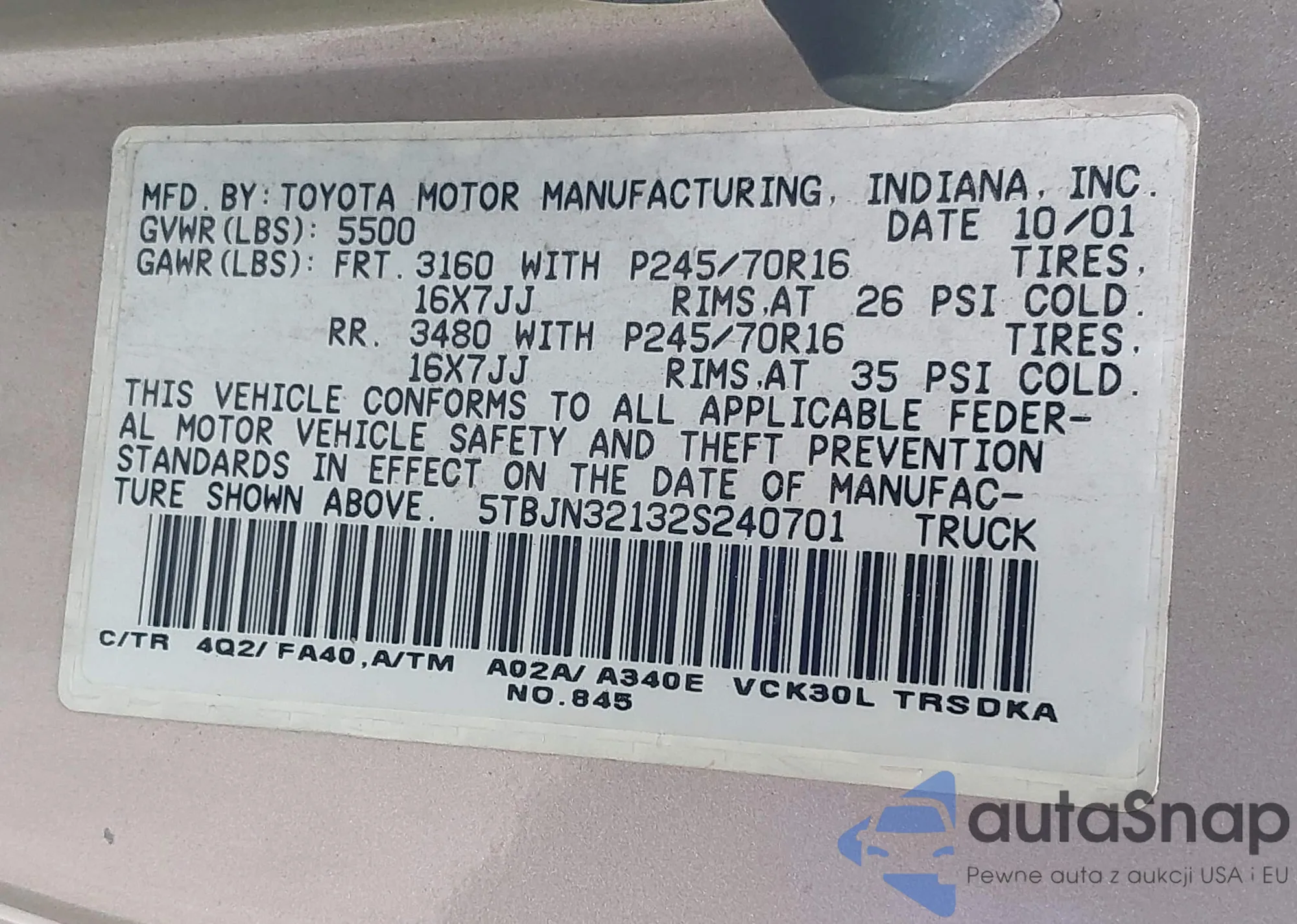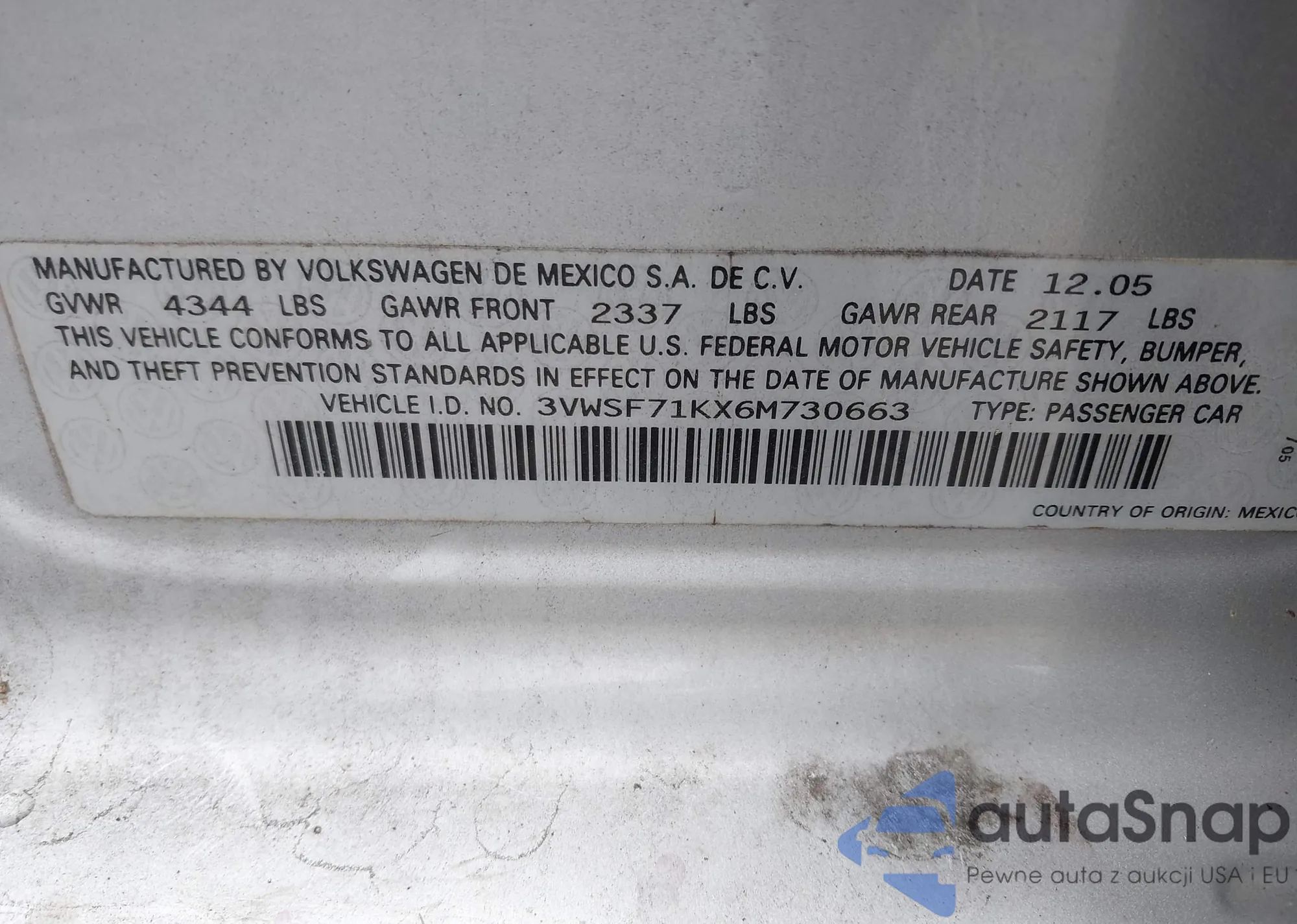 • VIN 4S3BMBK62A3244226