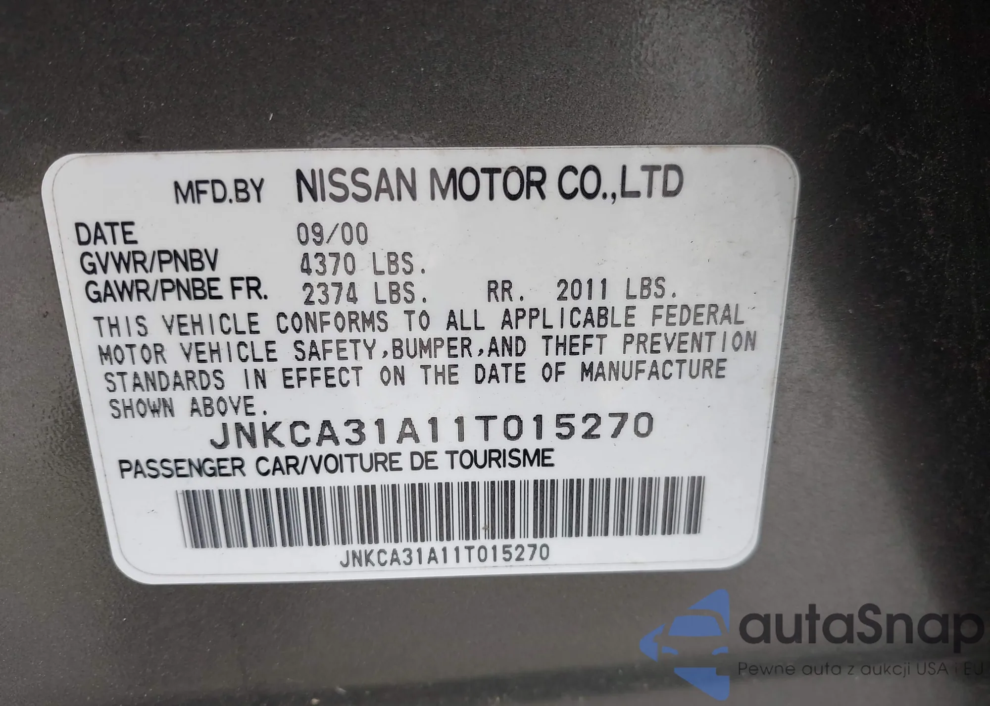 • VIN JNKCA31A11T015270