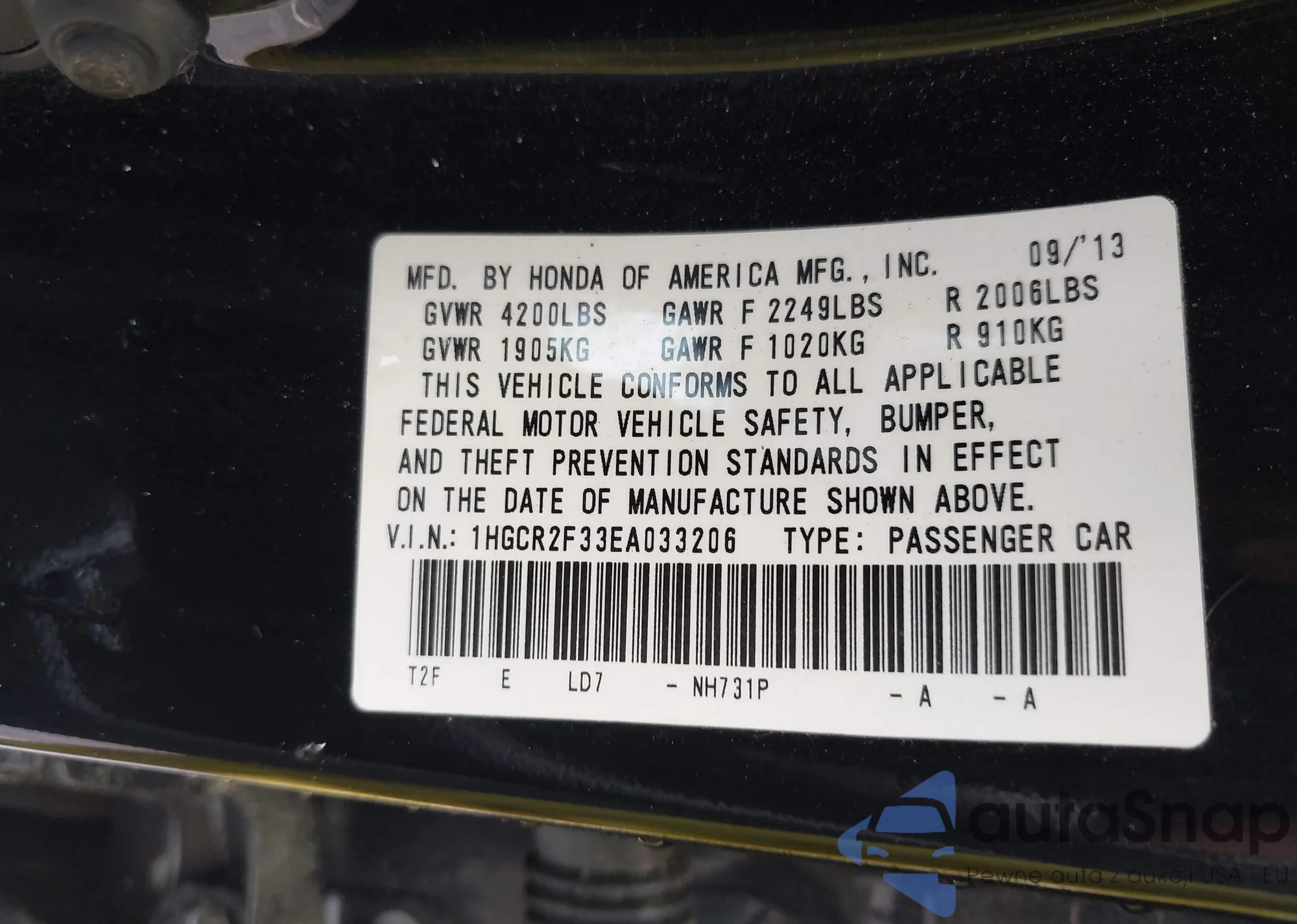 LOT: 42799526 VIN: JHLRE48309C009746
