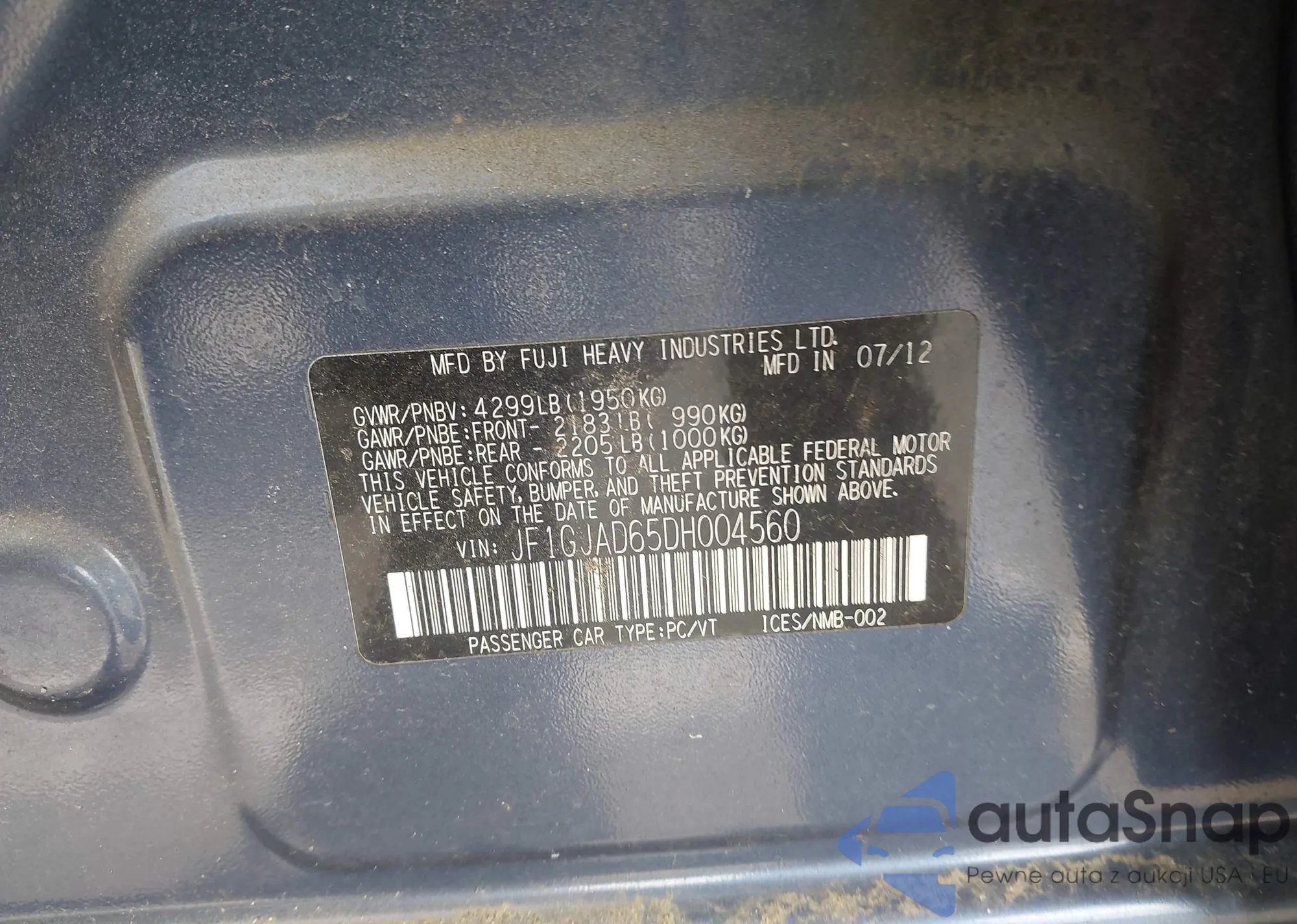 • VIN JF1GJAD65DH004560
