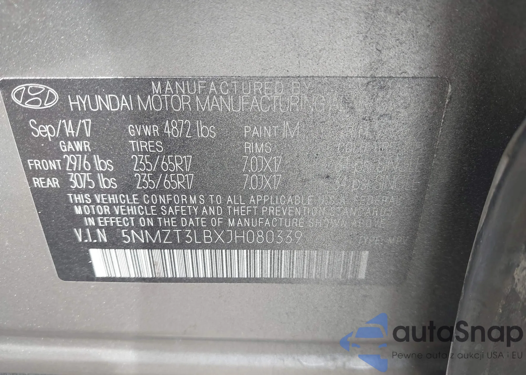 • VIN 5NMZT3LBXJH080339