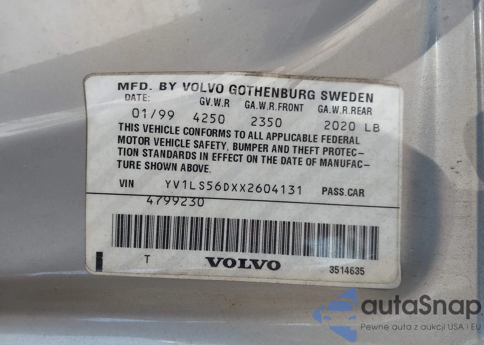 • Lot number 42799526