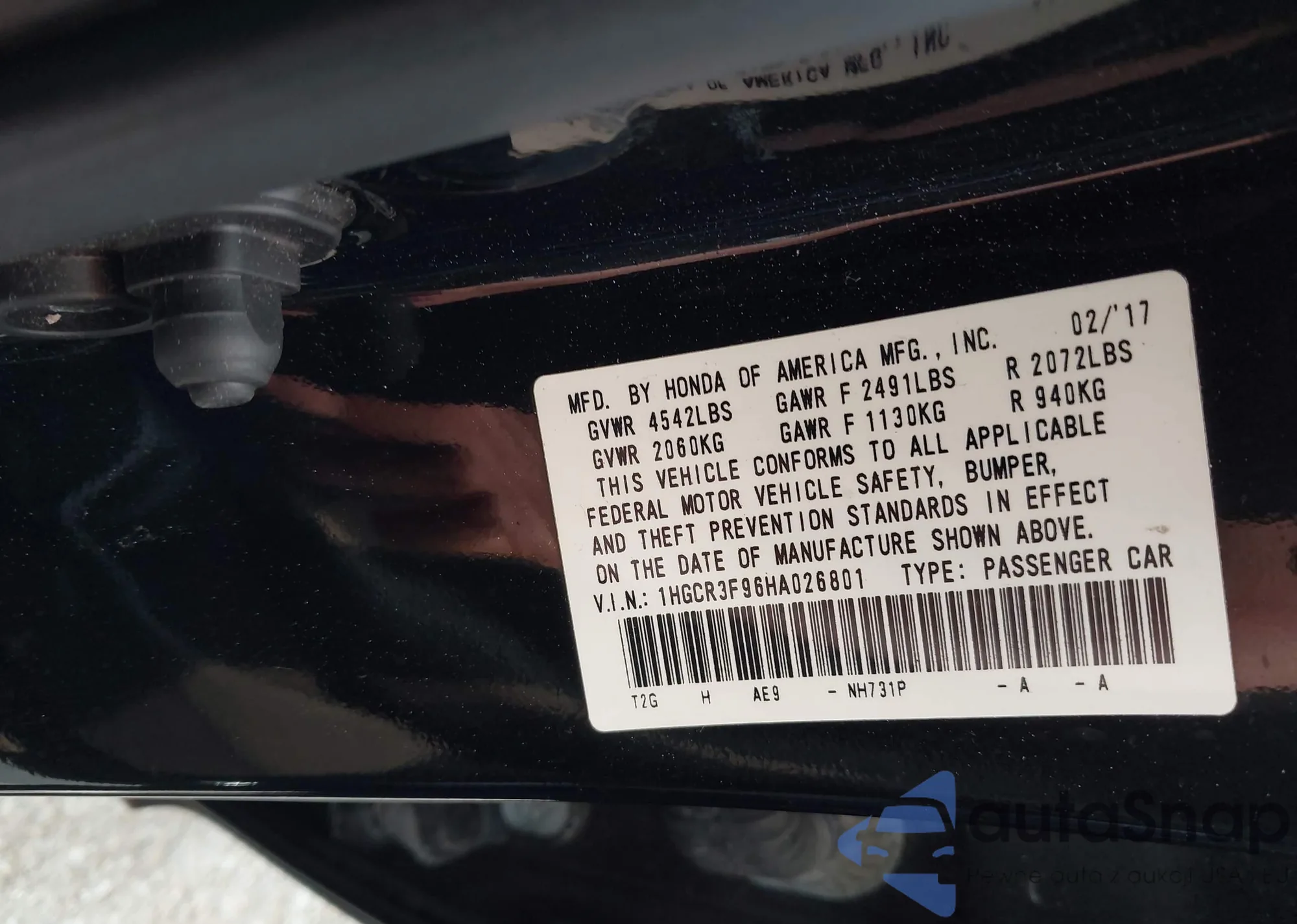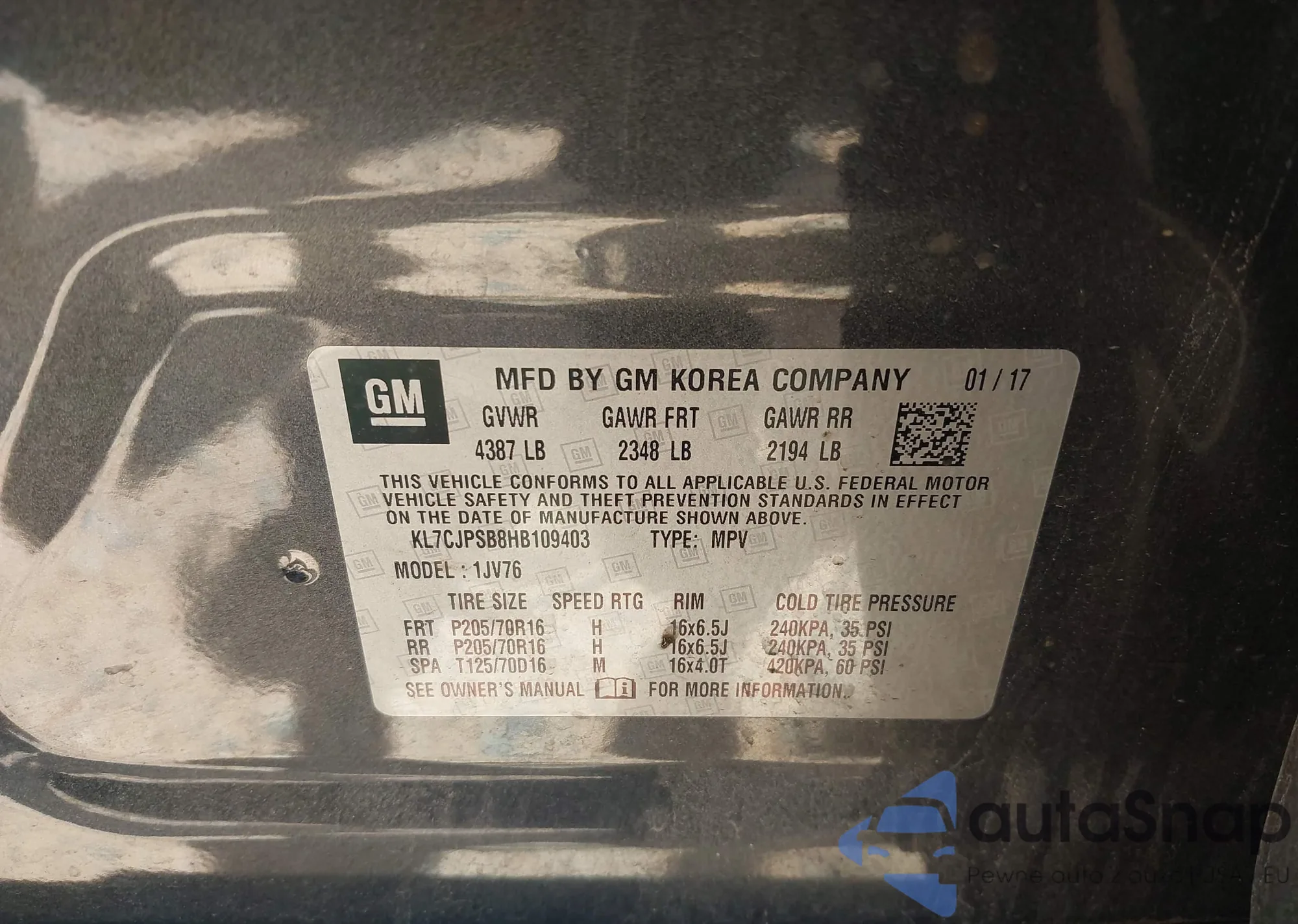 • VIN KL7CJPSB8HB109403