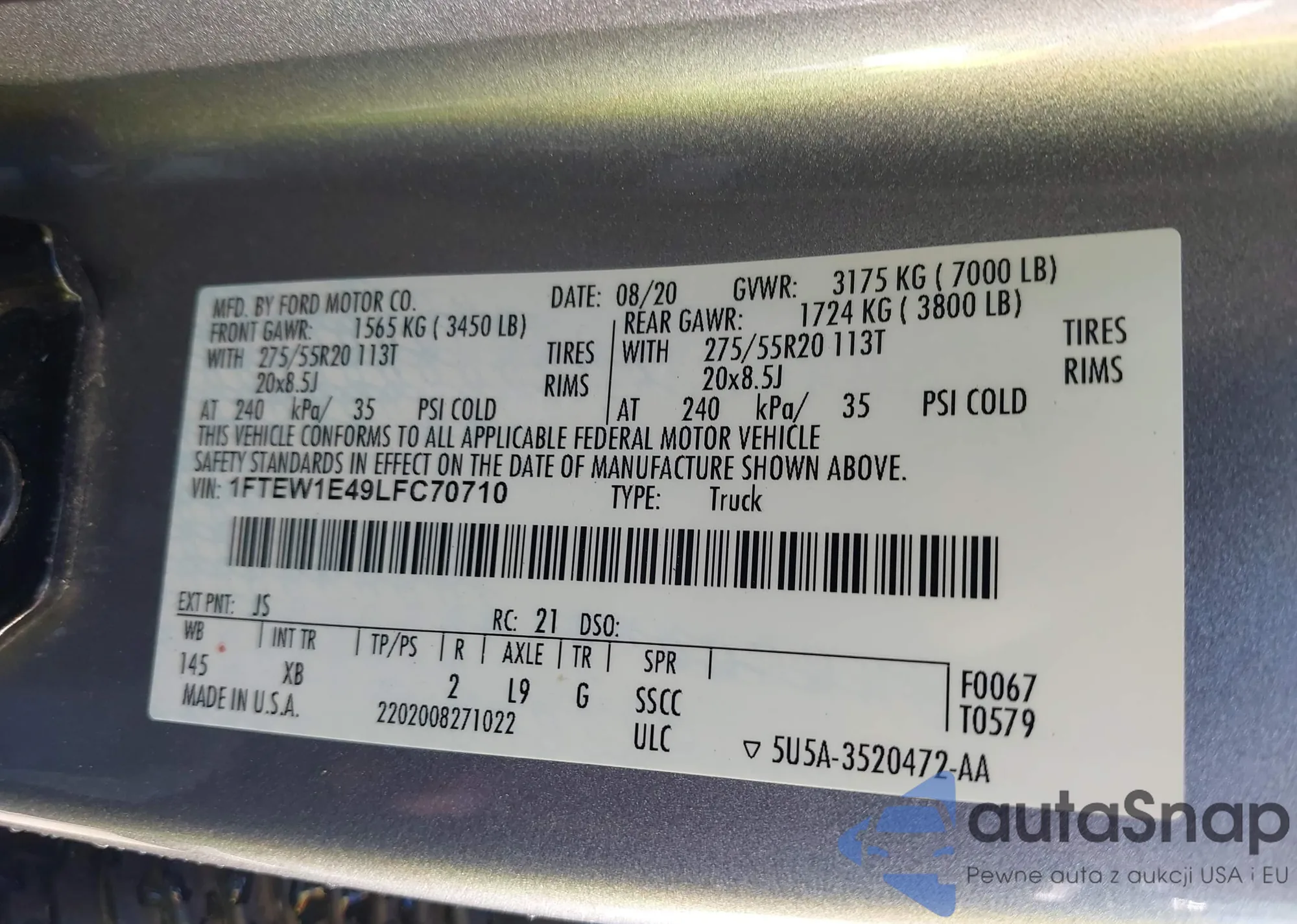 • VIN 1FTEW1E49LFC70710