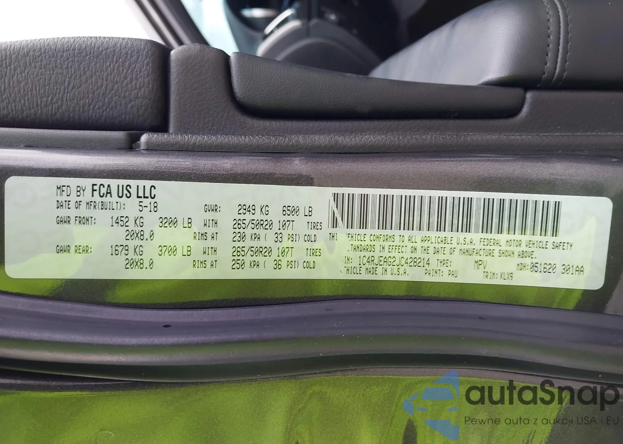 • VIN 1C4RJEAG2JC428214