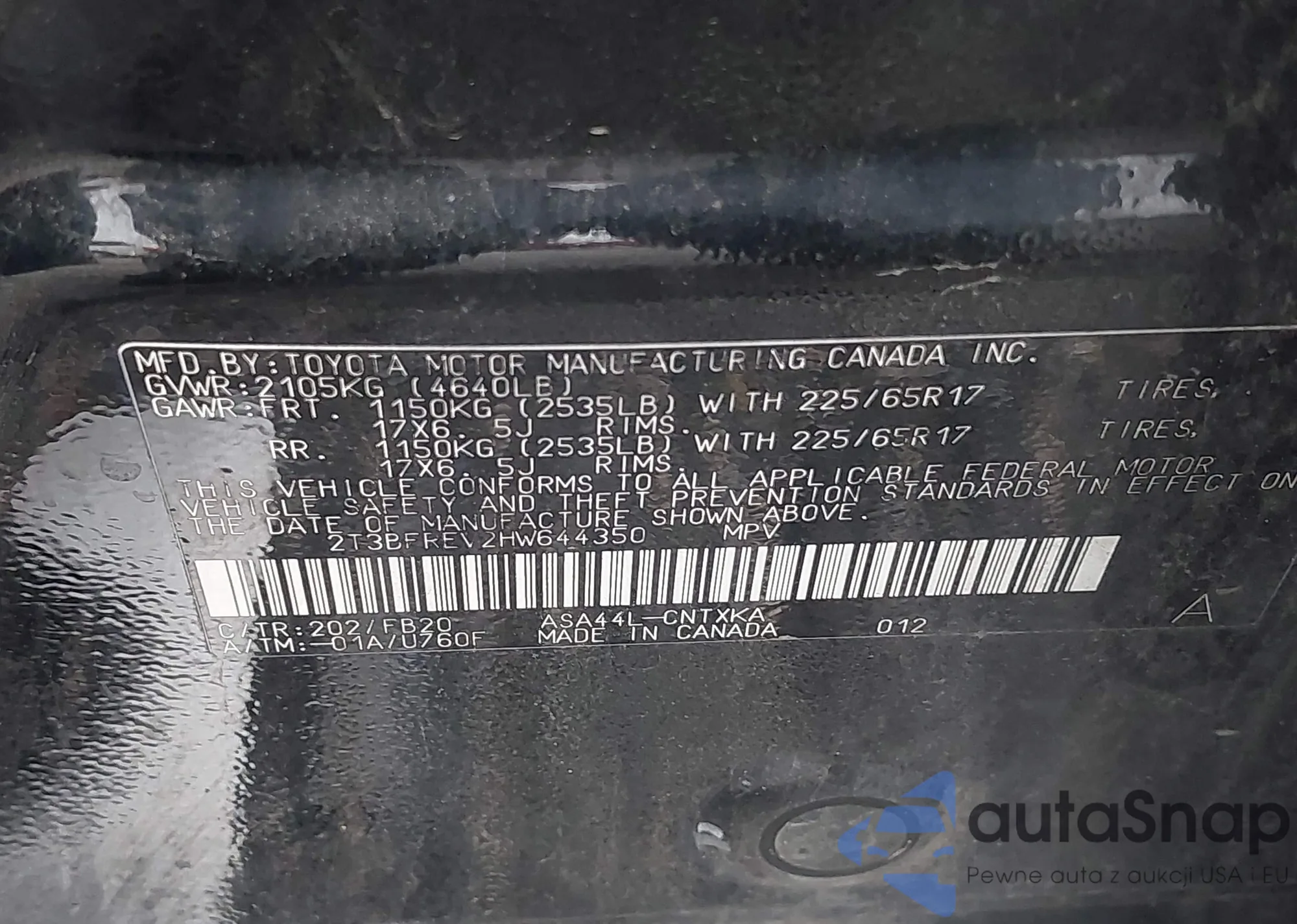 • VIN 5TDKK3EH0AS022050