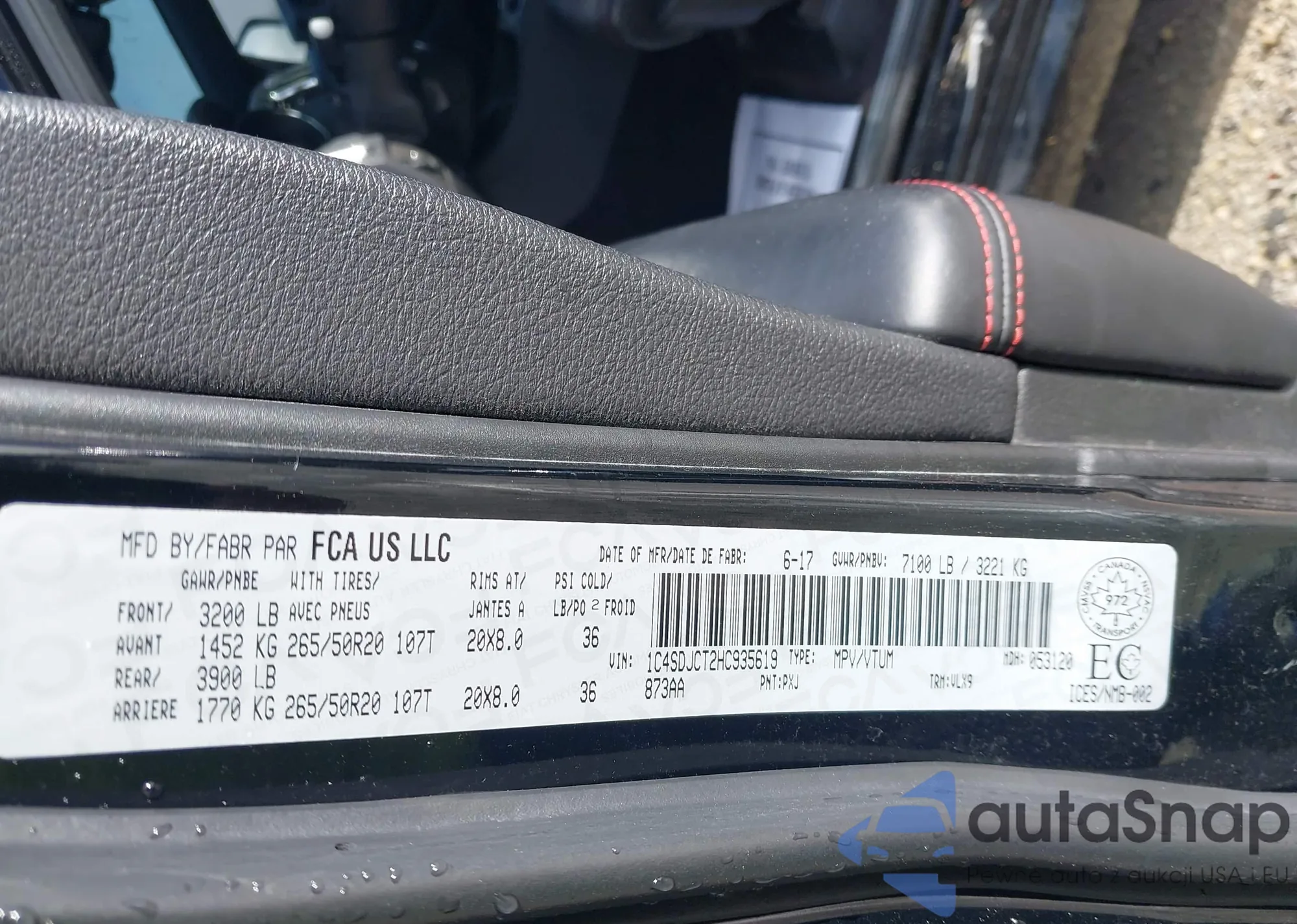LOT: 41959296 VIN: 1C4SDJCT2HC935619