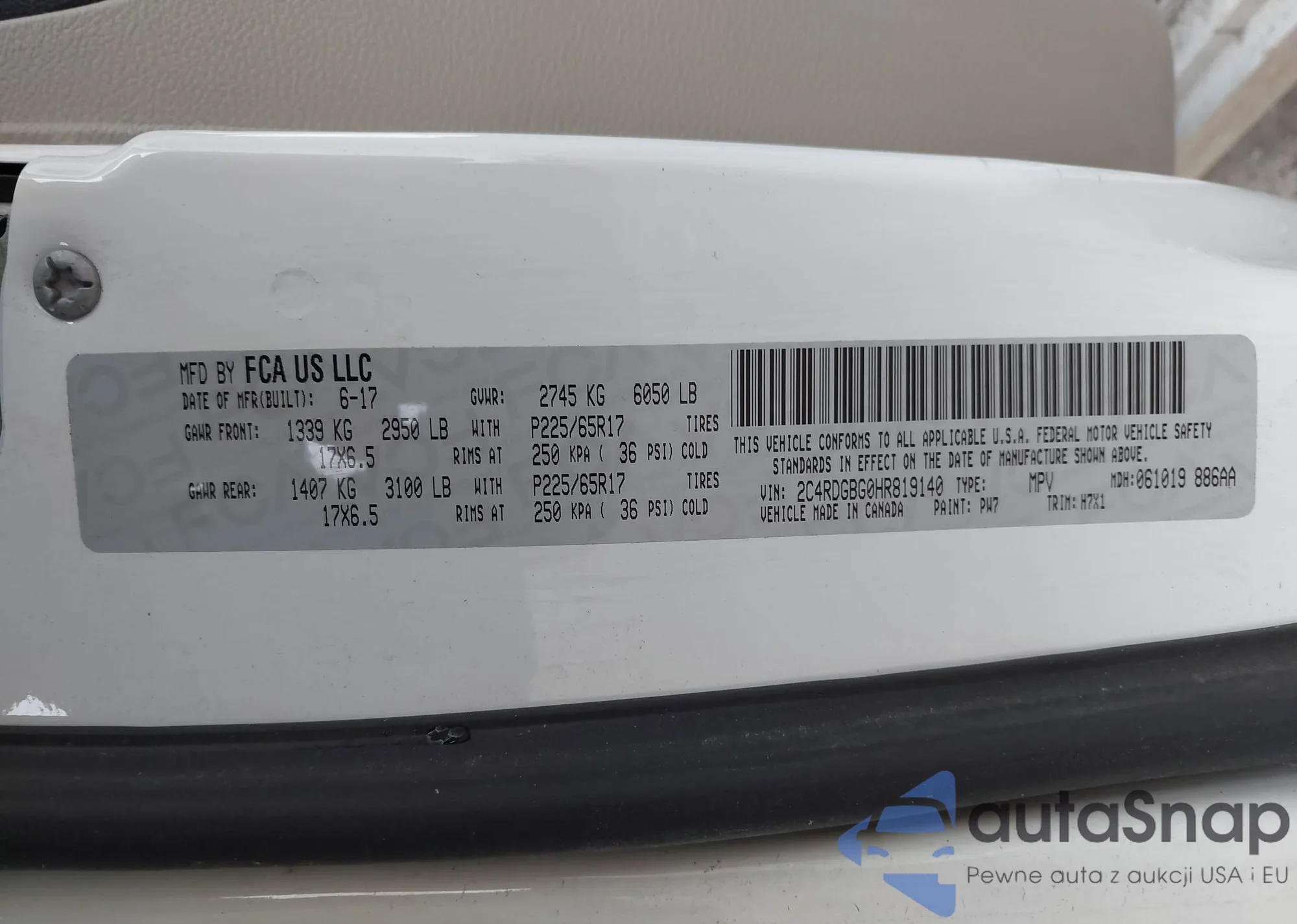 LOT: 41727322 VIN: 5N1DR2MM2HC668582