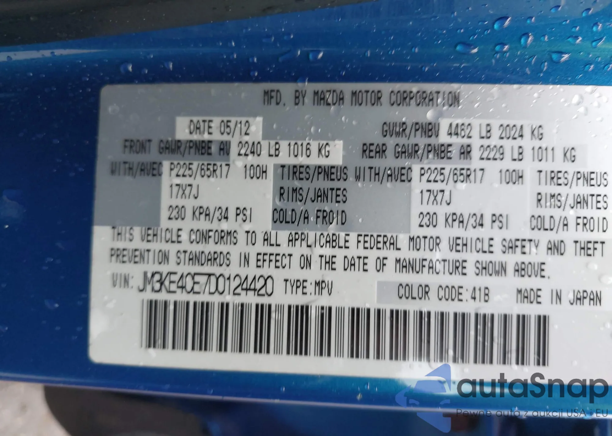 LOT: 42012179 VIN: JM3KE4CE7D0124420
