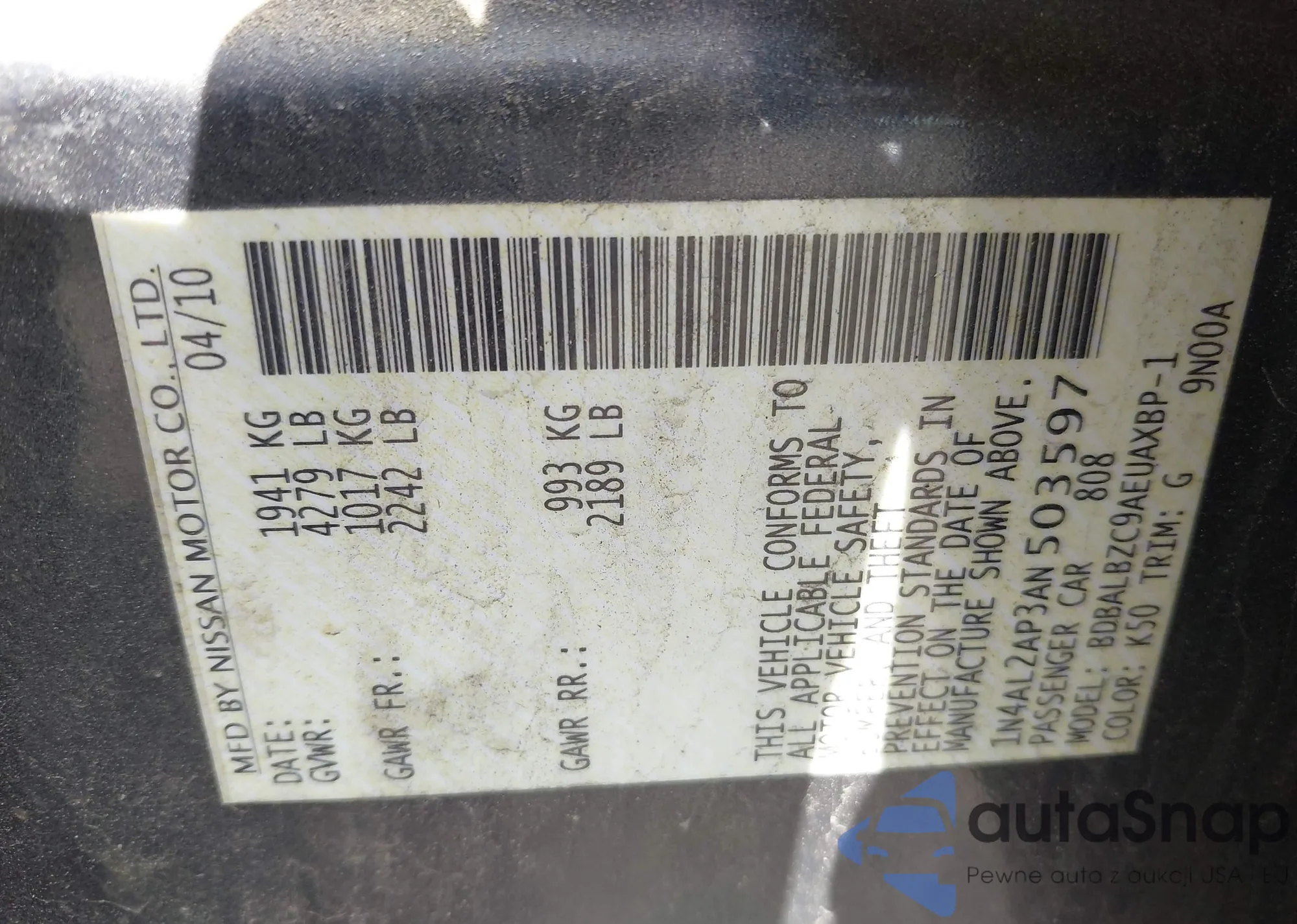LOT: 42148121 VIN: 1N4AL2AP3AN503597