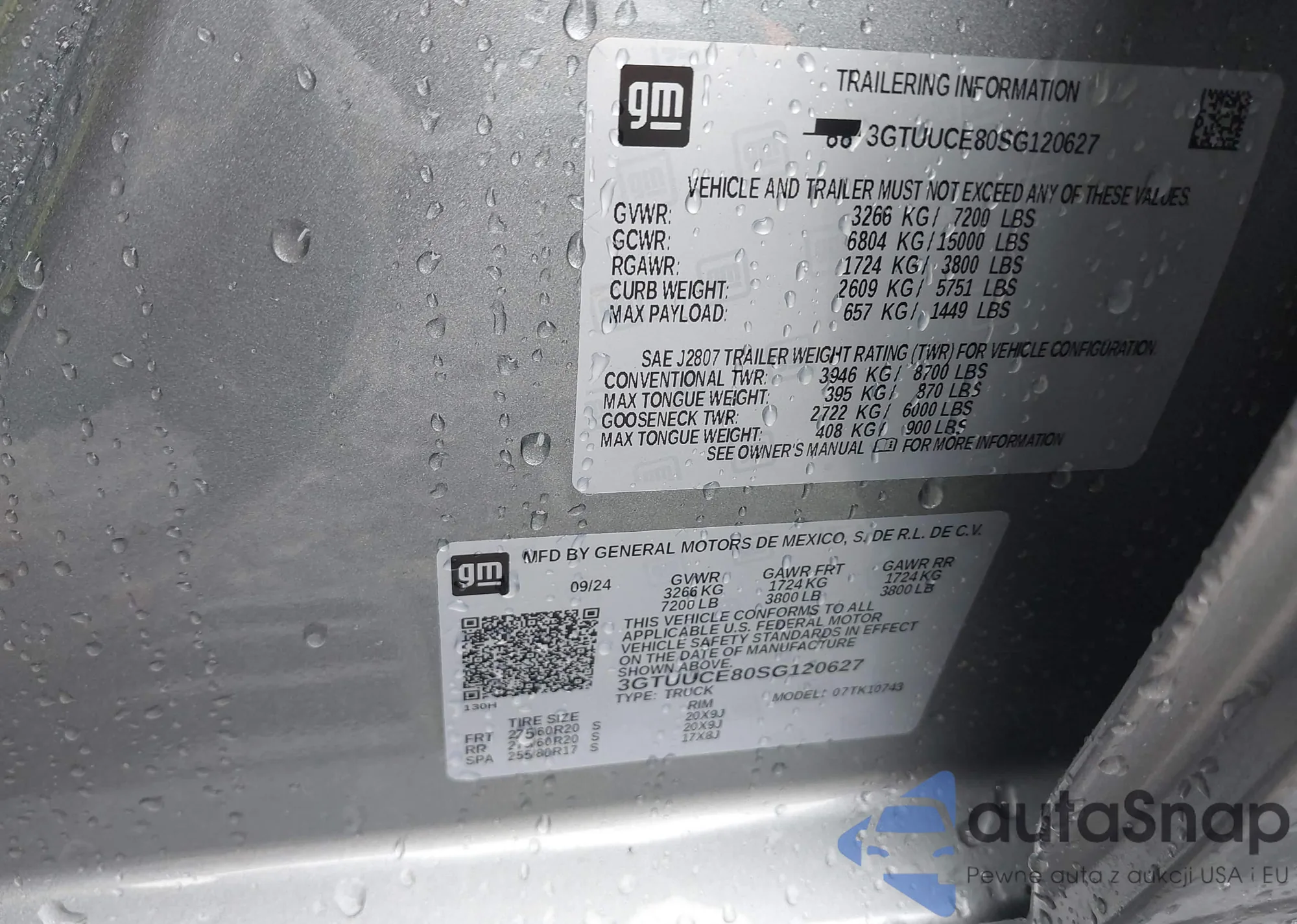 LOT: 42931450 VIN: 3GTUUCE80SG120627