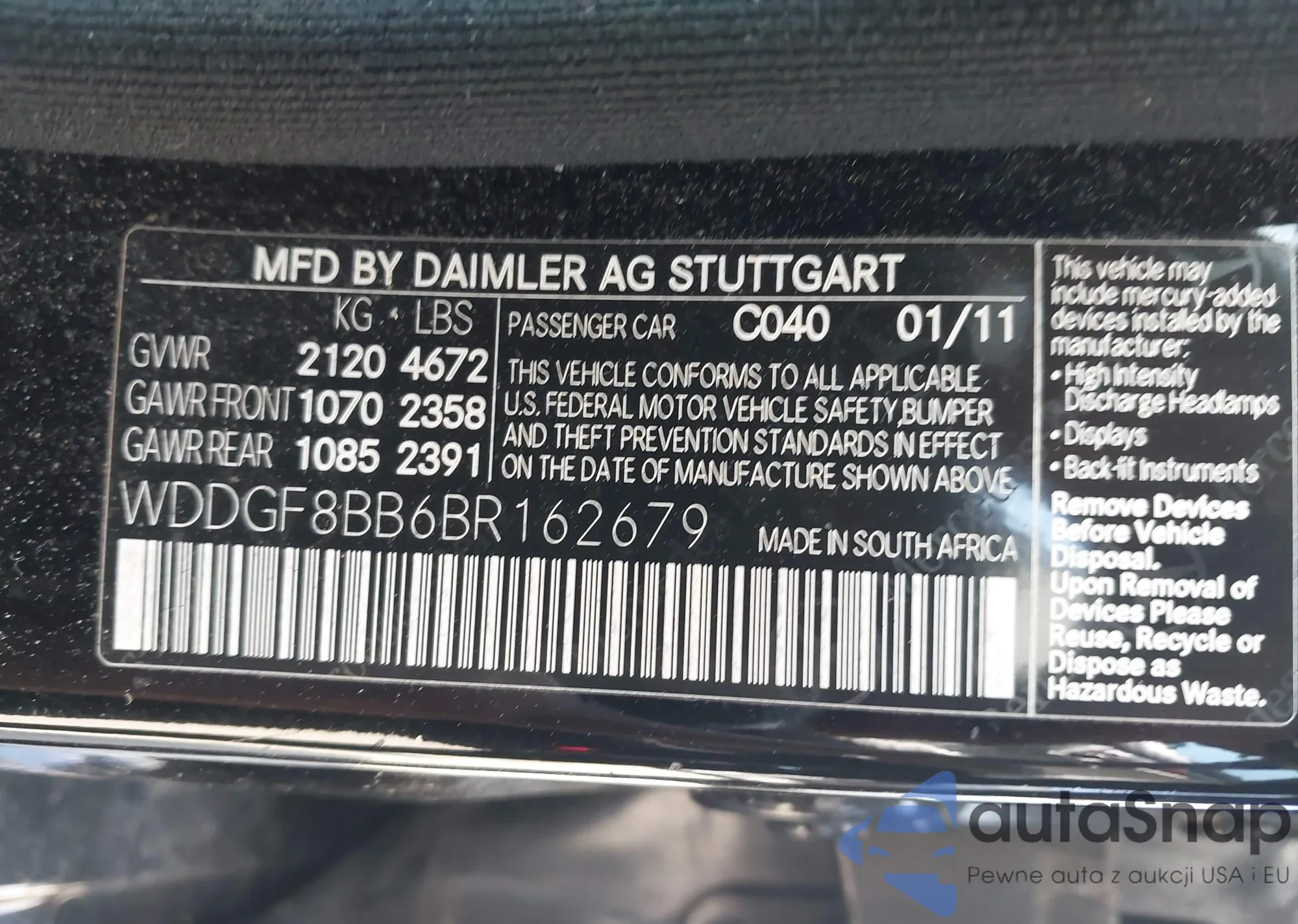 • VIN 1G6DA5EY4B0161452