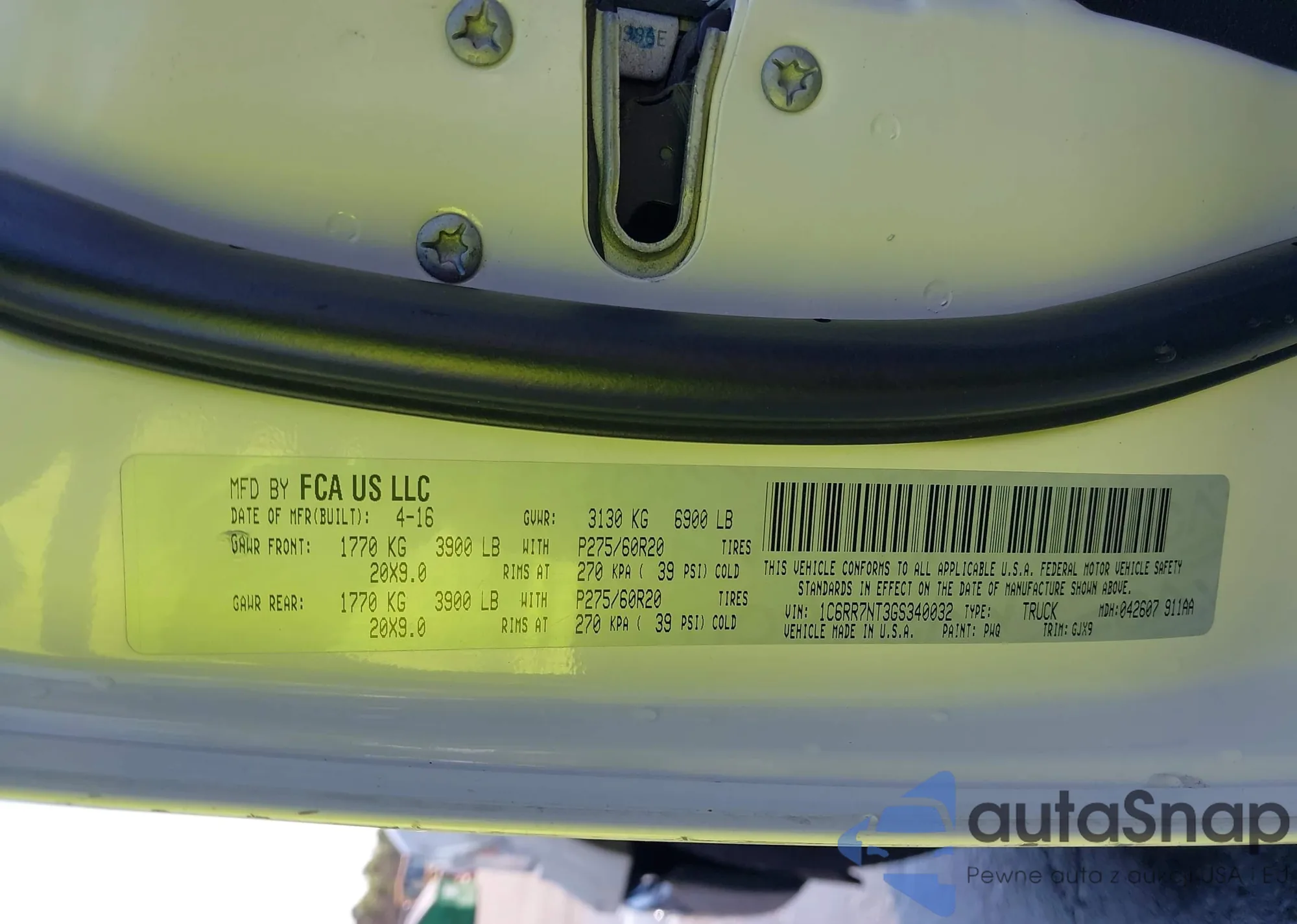 • VIN 1C6RR7NT3GS340032