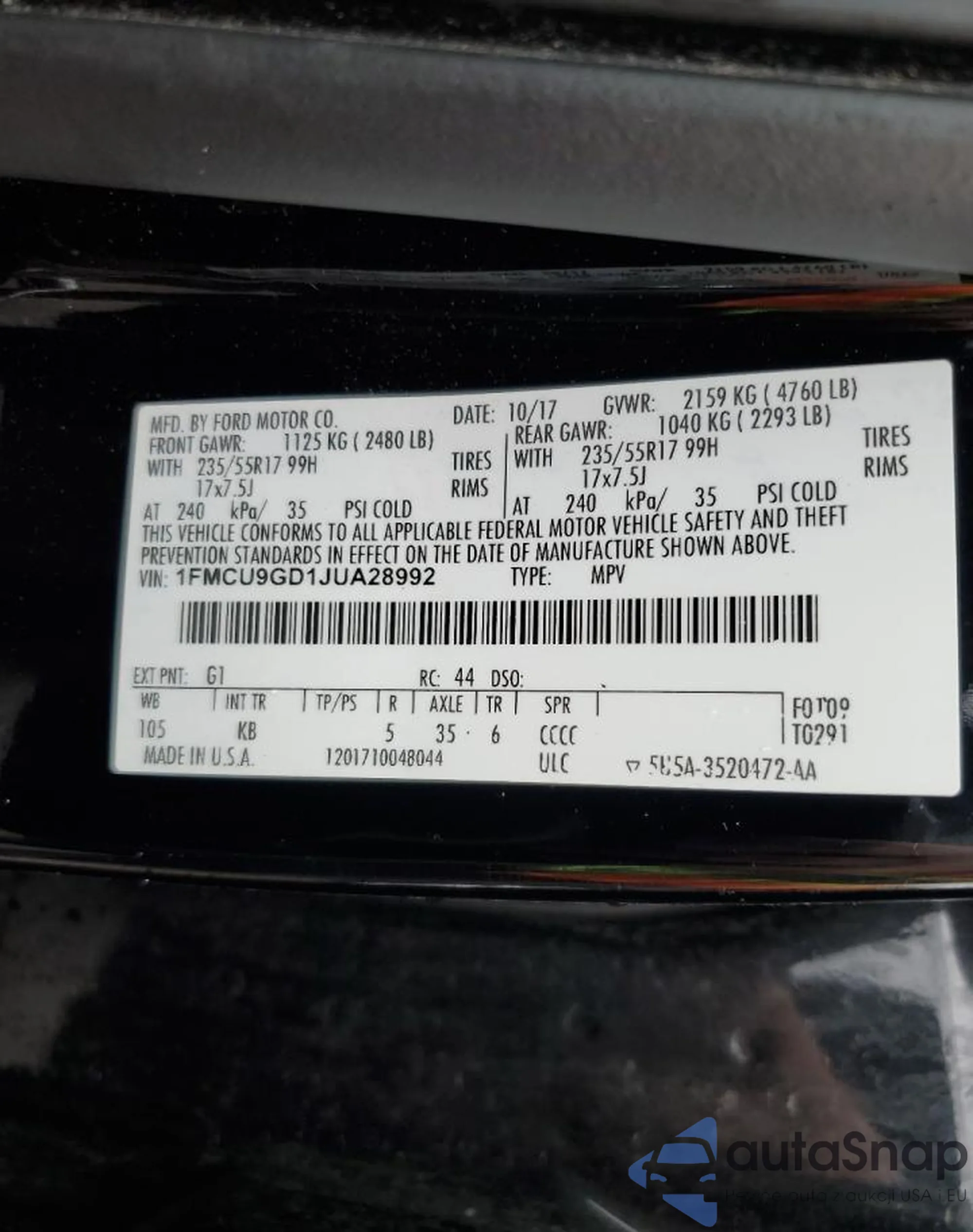 • VIN 3FA6P0CD1KR233396