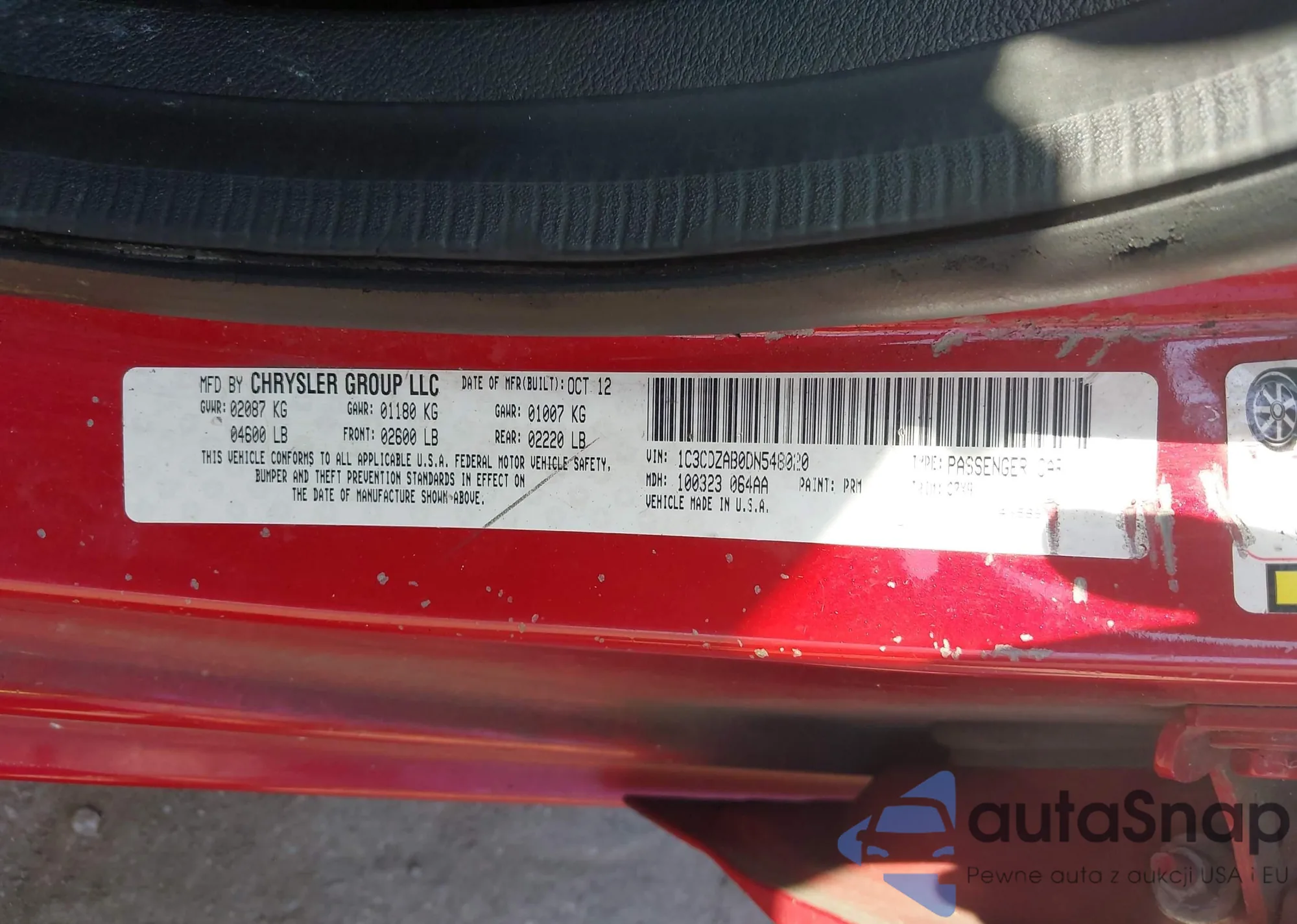LOT: 42581563 VIN: 3N1AB8BV6PY296988