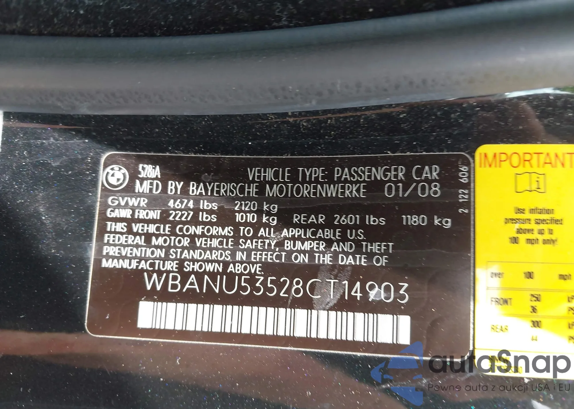 • VIN WBANU53528CT14903
