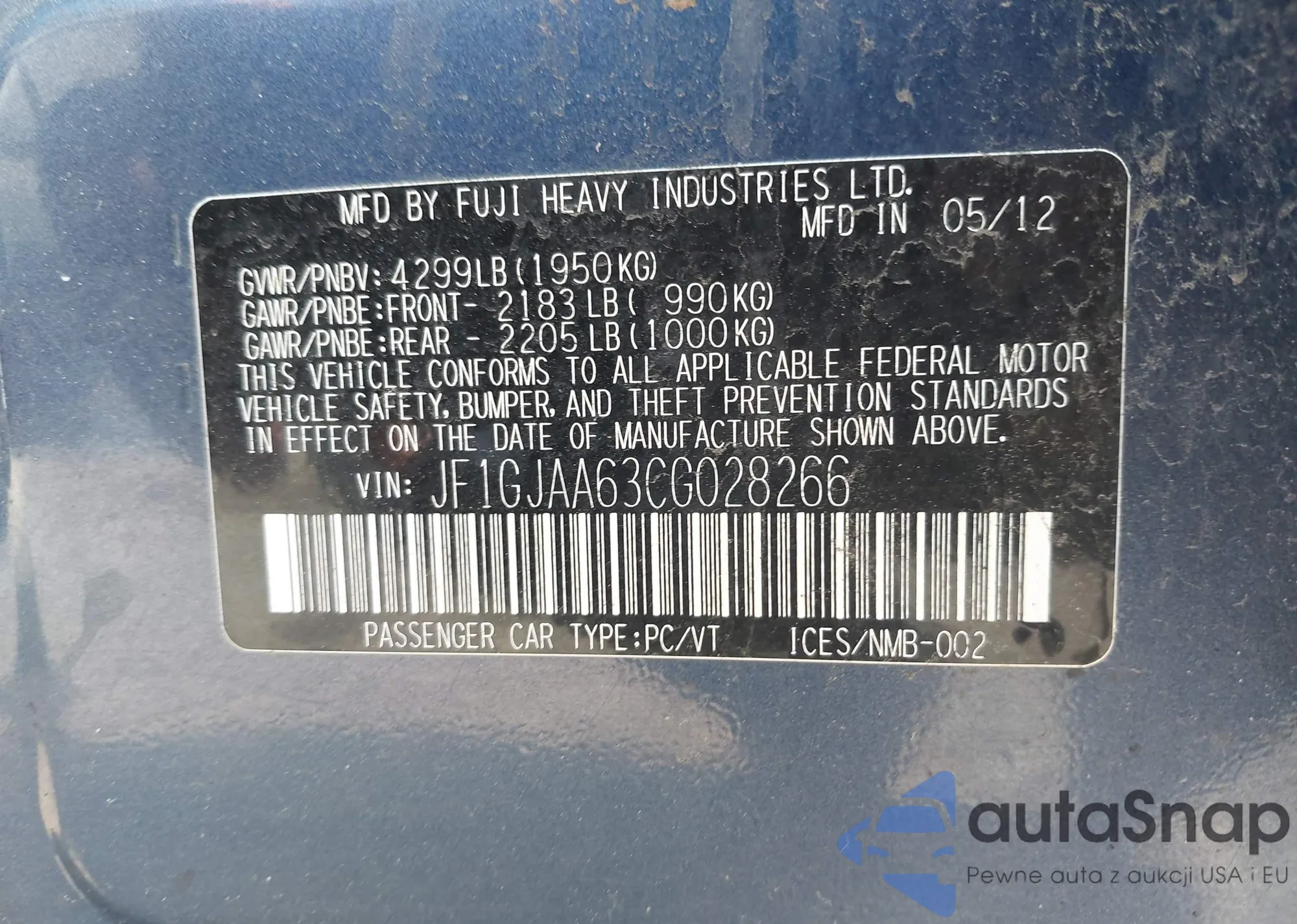 • VIN JF1GJAA63CG028266
