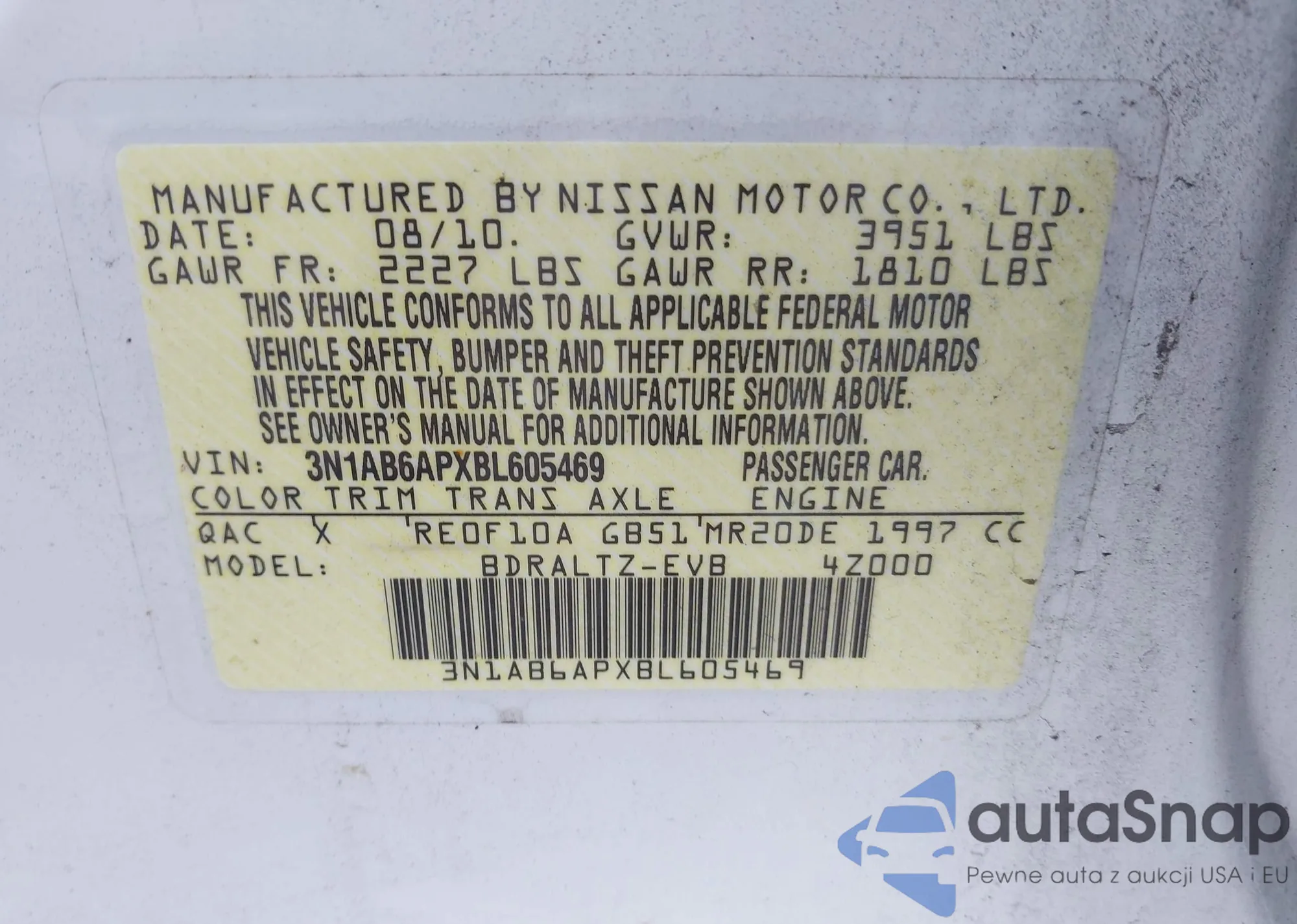 • VIN 3N1AB6APXBL605469