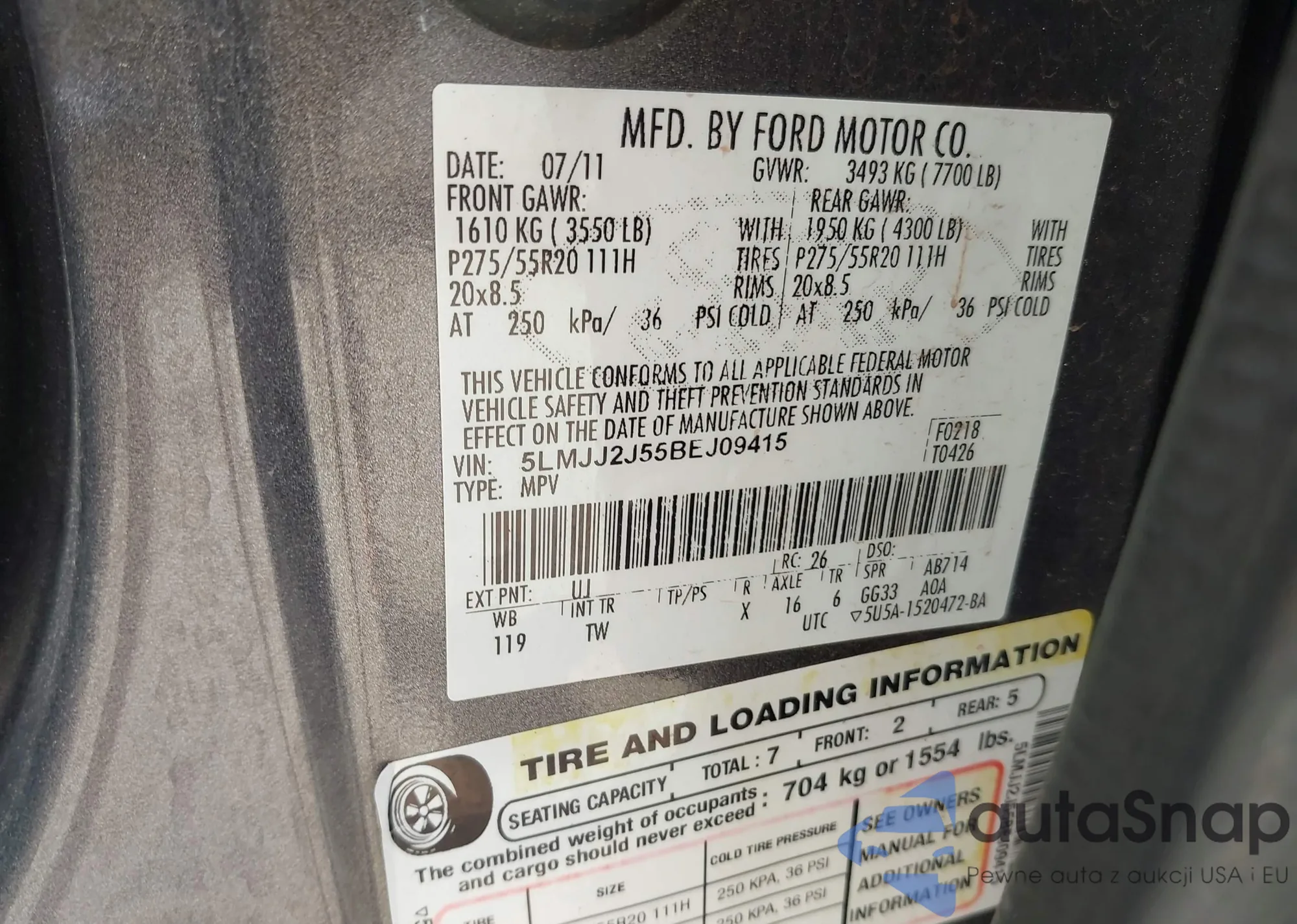 LOT: 42926554 VIN: 5J6YH18767L010876