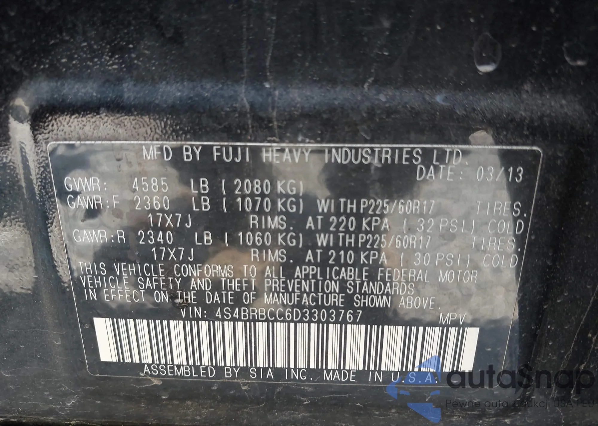LOT: 42998365 VIN: 4S4BRBCC6D3303767