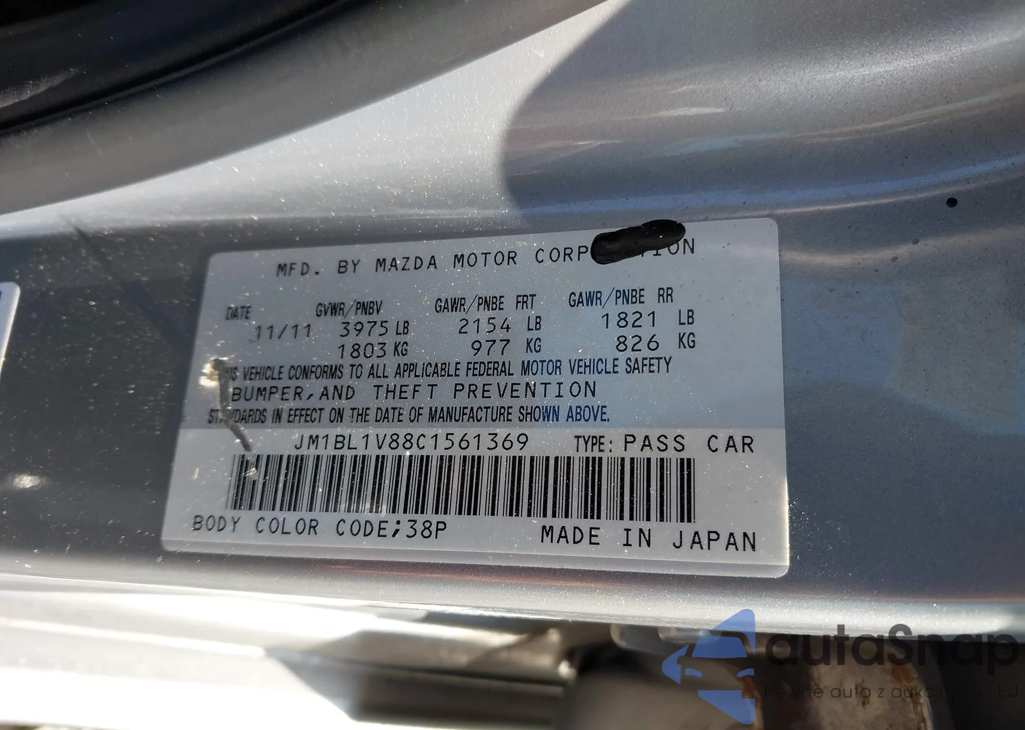 LOT: 42840453 VIN: JM3KE4BE9E0378598