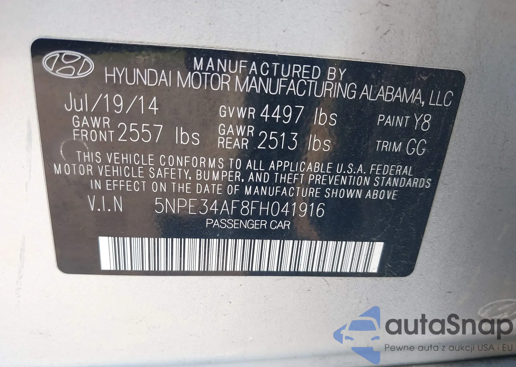 • VIN 5NPE34AF8FH041916