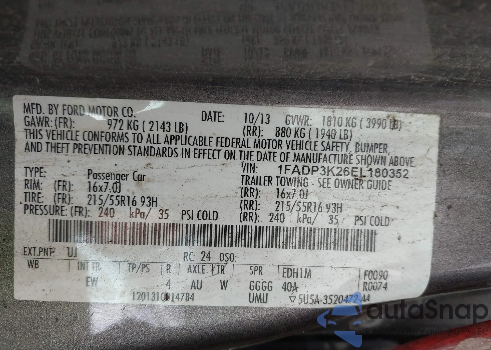 • VIN 1FMCU9GX3FUC44666
