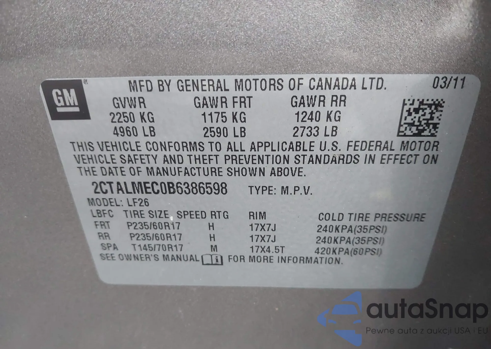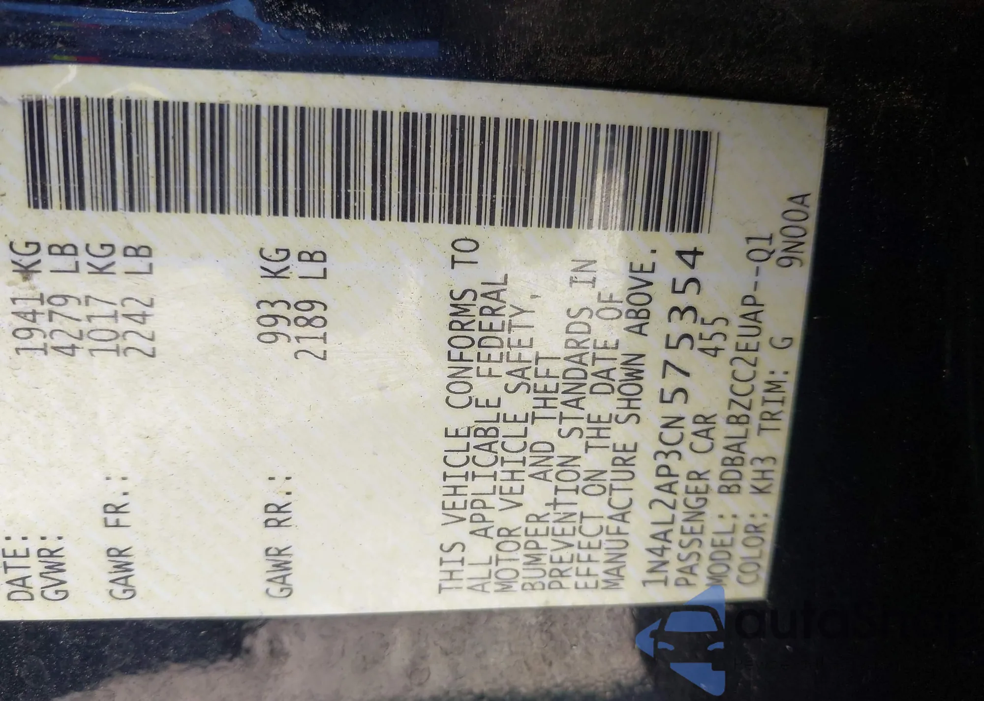 • VIN 1N4AL2AP3CN575354