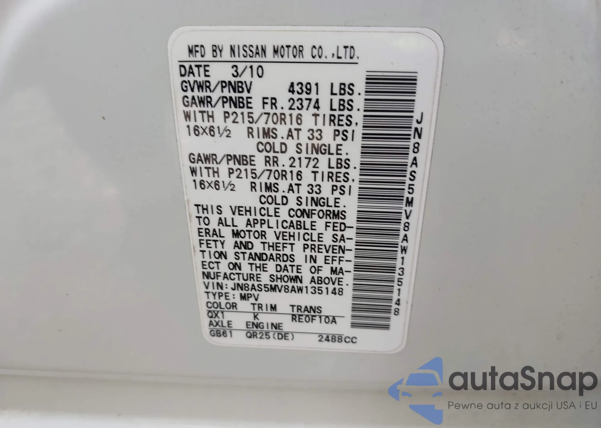 • VIN JN8AS5MV8AW135148