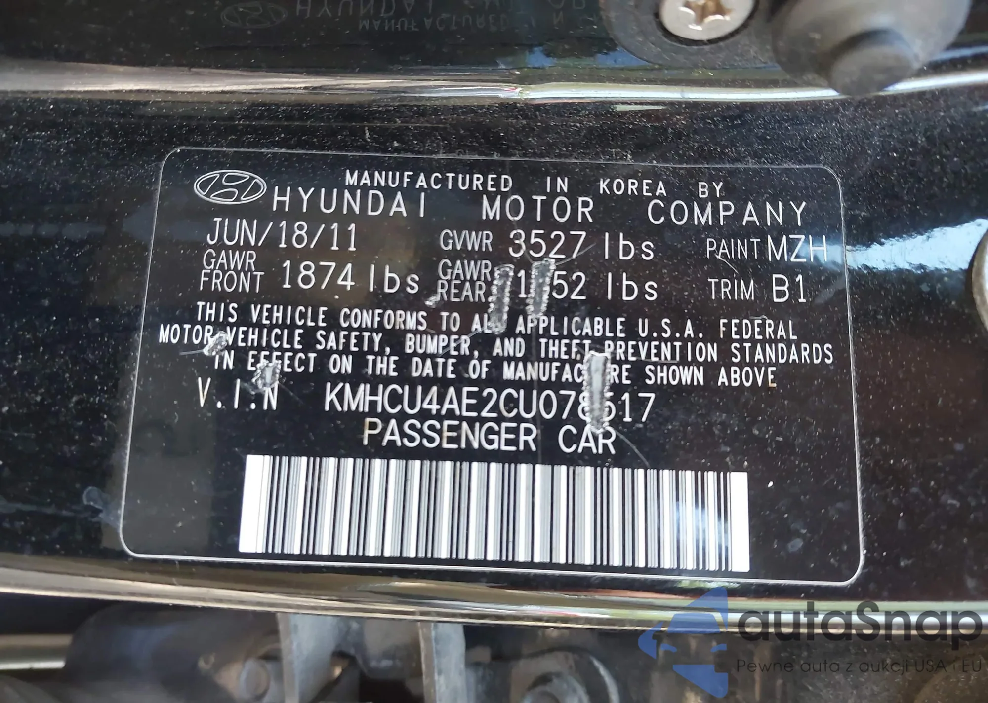 LOT: 43093575 VIN: KMHCU4AE2CU078517