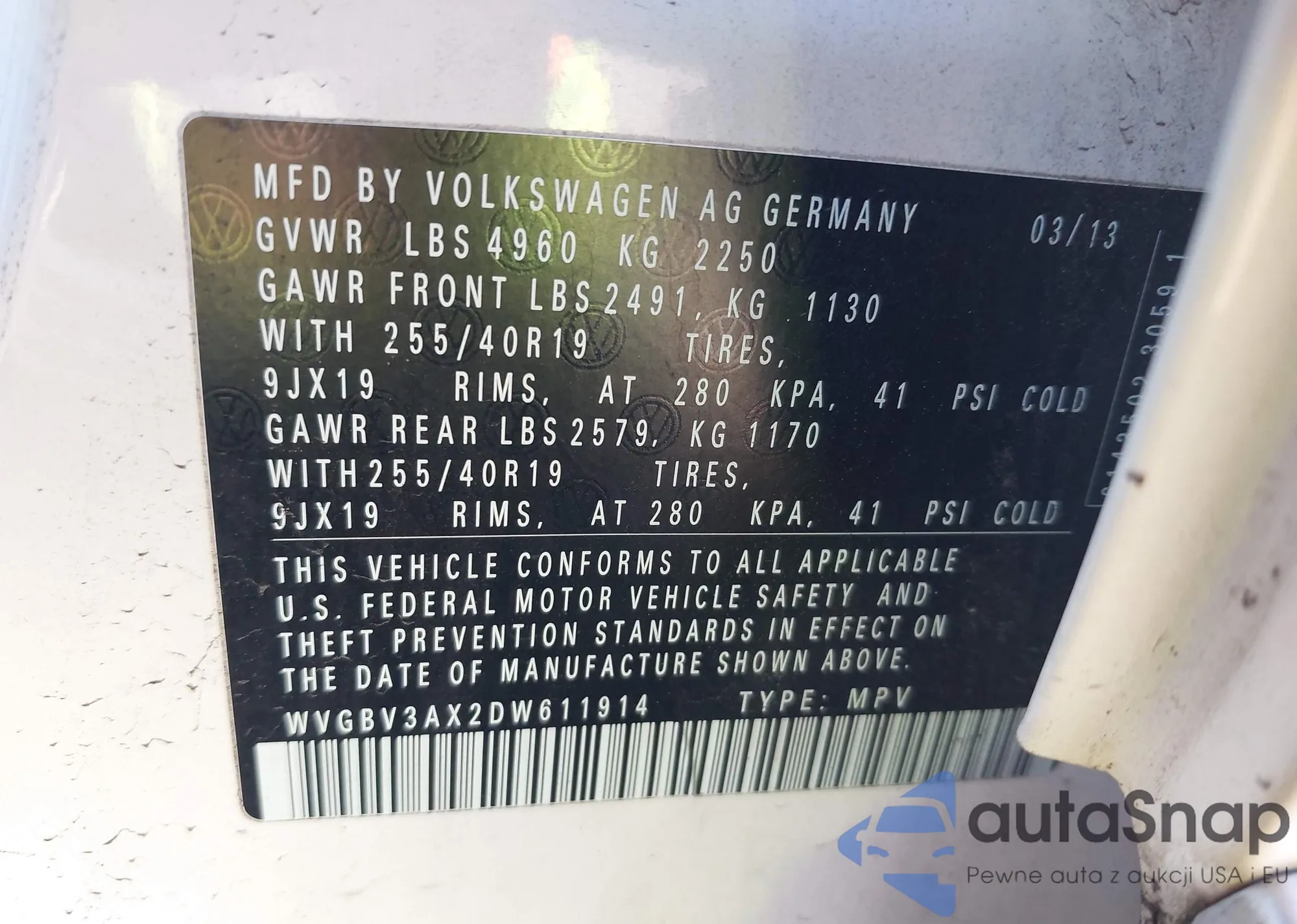 • VIN 5J8TB4H55DL012486