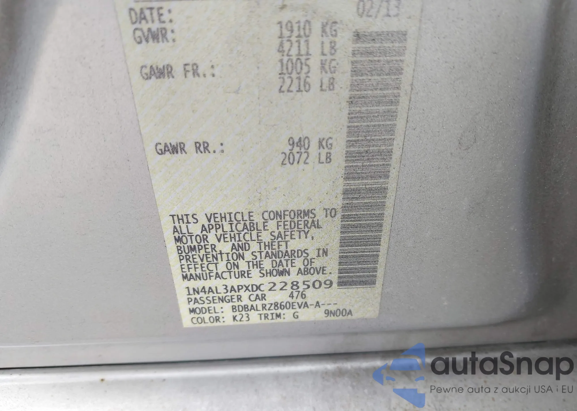 LOT: 43118559 VIN: 1N4AL2AP3CN575354