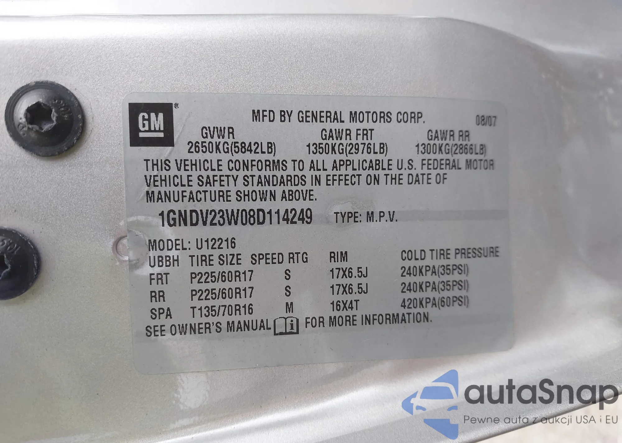LOT: 43007072 VIN: 1GNDV23W08D114249