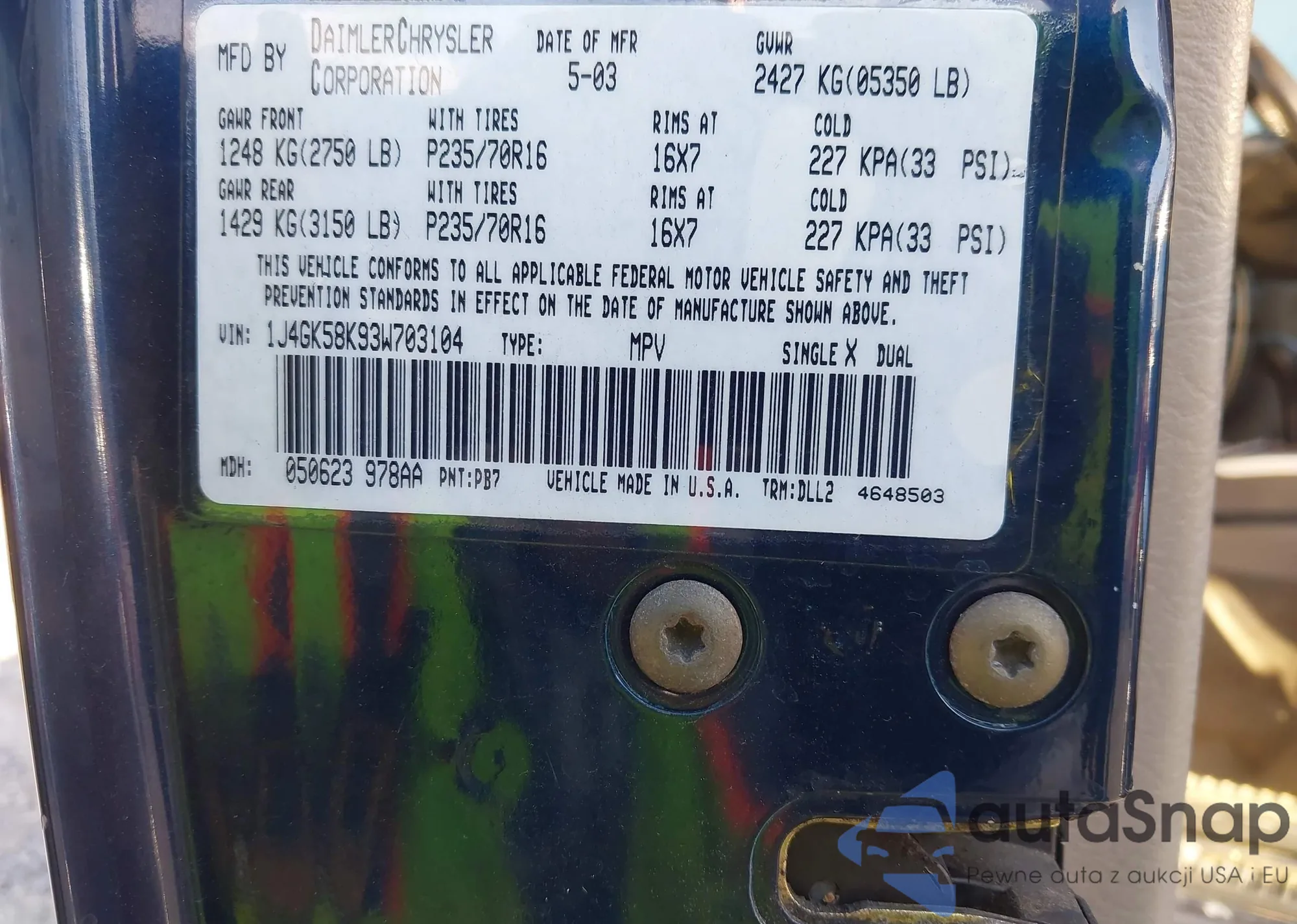 LOT: 43033451 VIN: 1J4GK58K93W703104