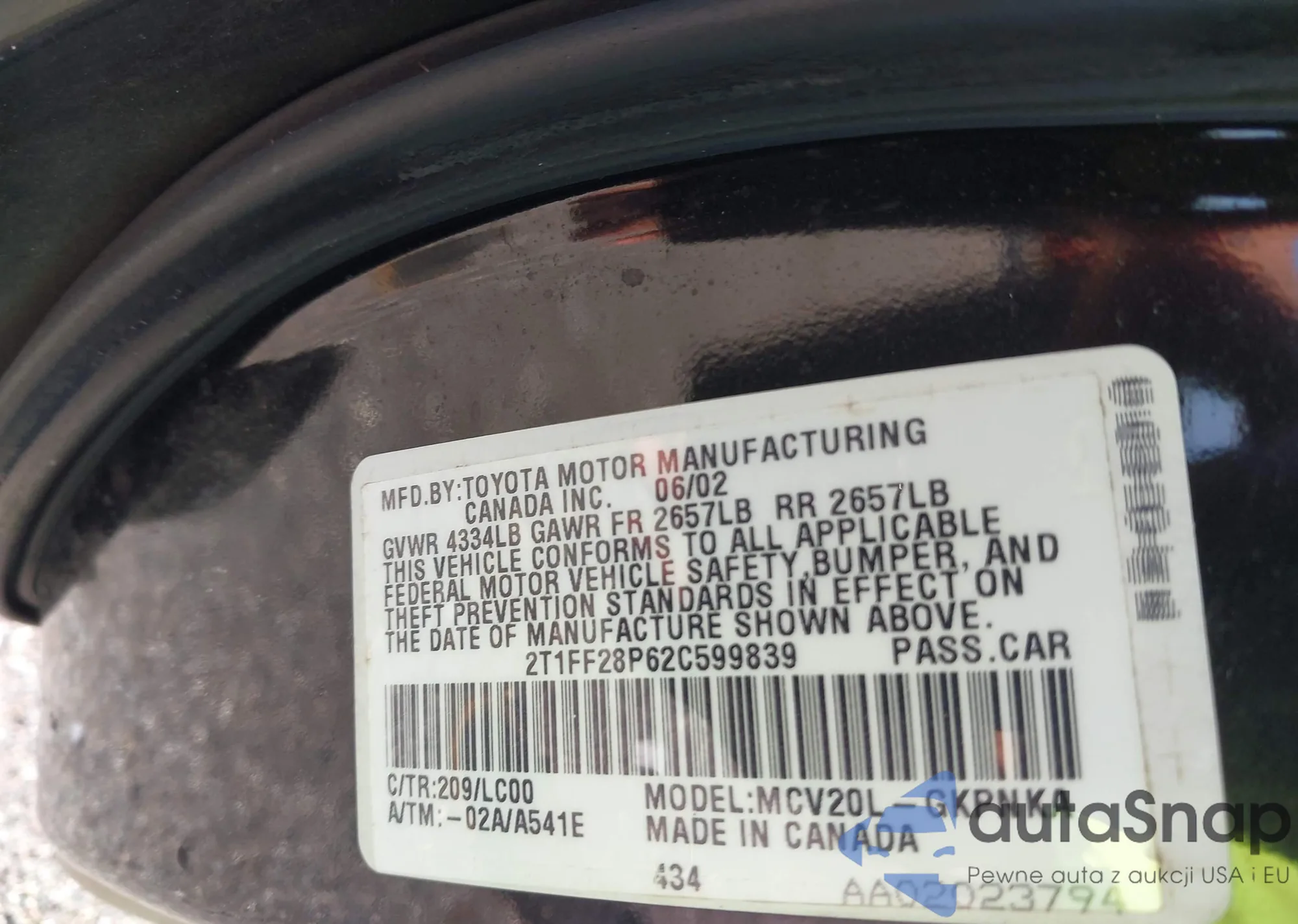 • VIN 2T1FF28P62C599839