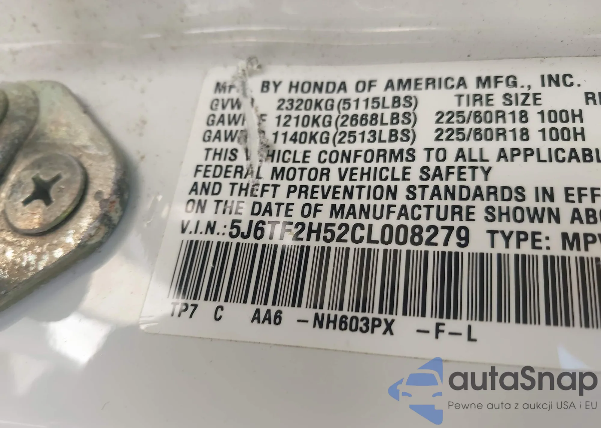 • VIN 5J6TF2H52CL008279