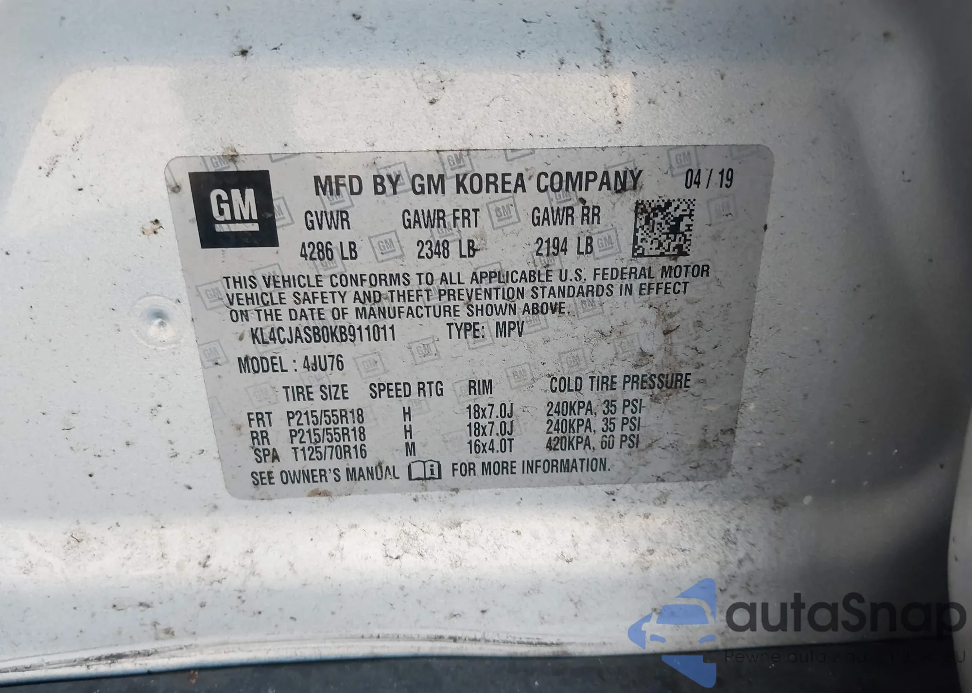 LOT: 43084030 VIN: KNAGM4A73F5571285