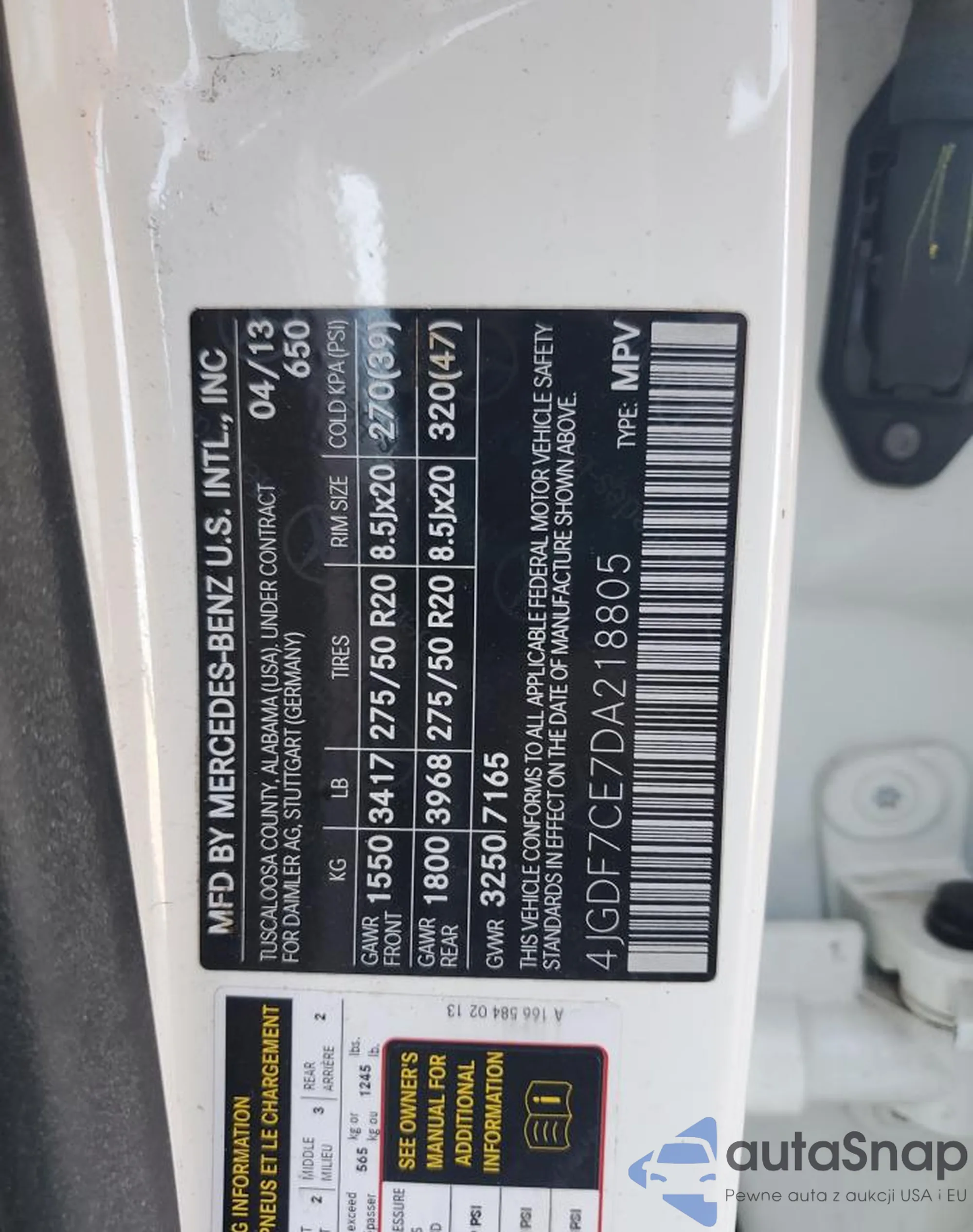 • VIN 4JGDF7CE7DA218805