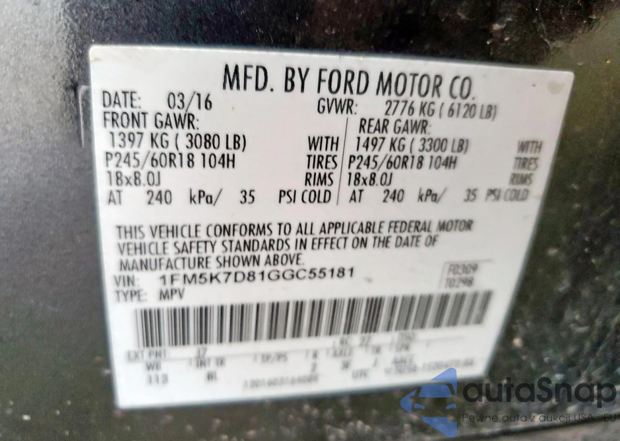 • VIN 1FM5K7D81GGC55181