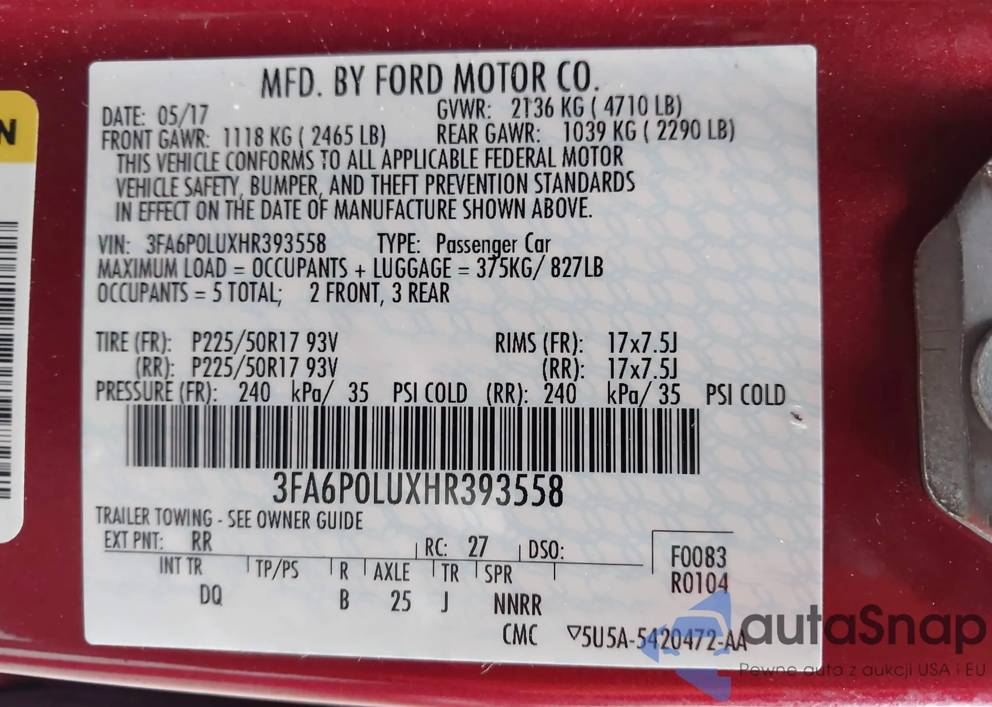 • VIN 3FA6P0LUXHR393558