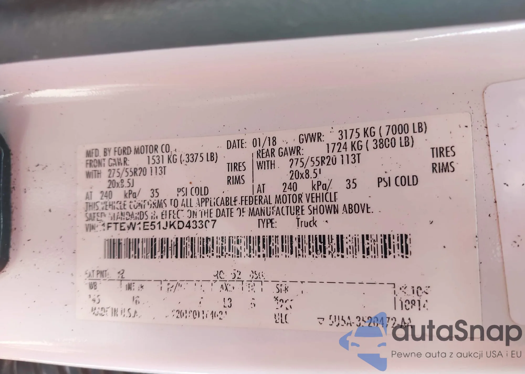 LOT: 43151032 VIN: 1FTEW1E51JKD43307