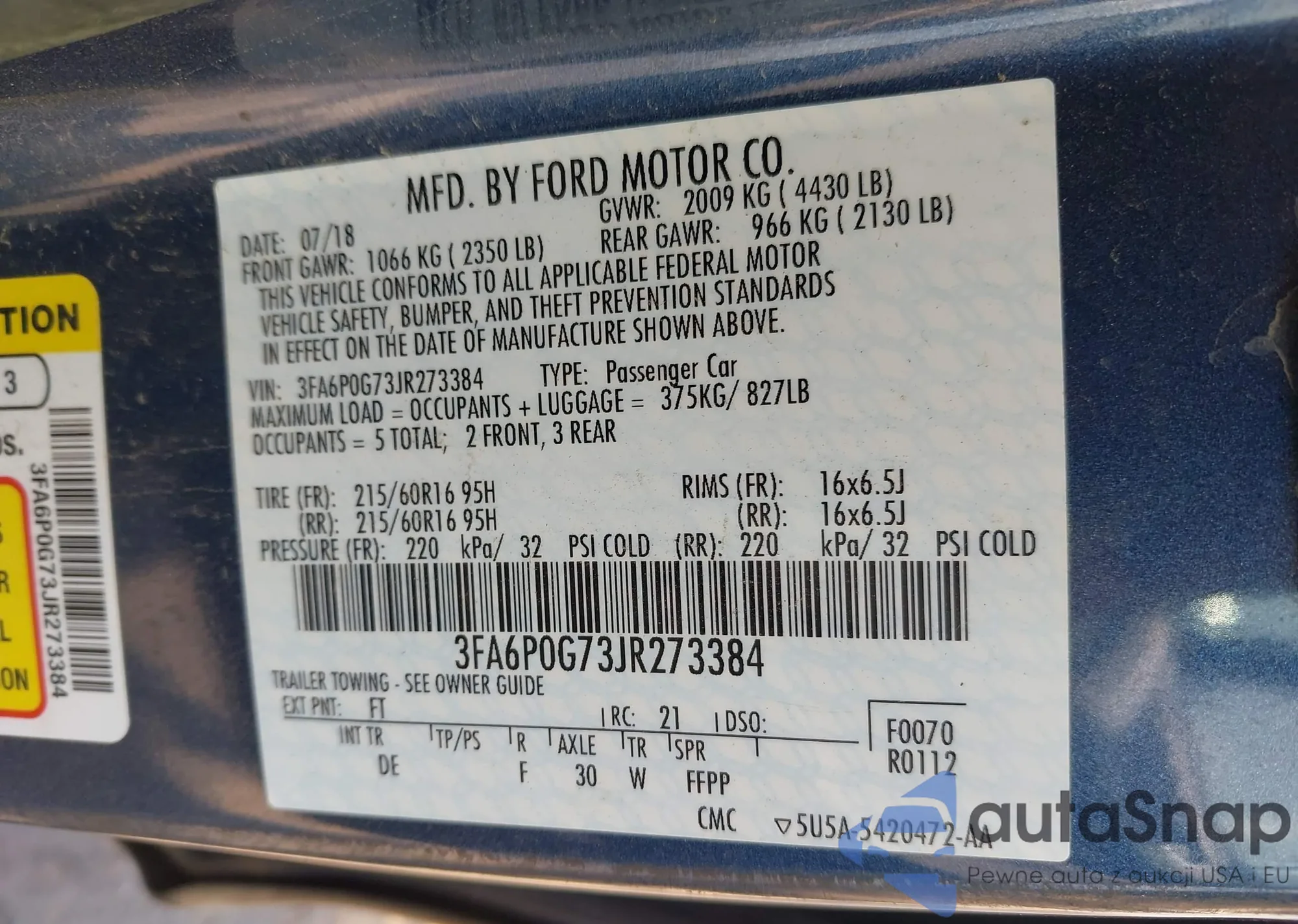 • VIN 3FA6P0G73JR273384