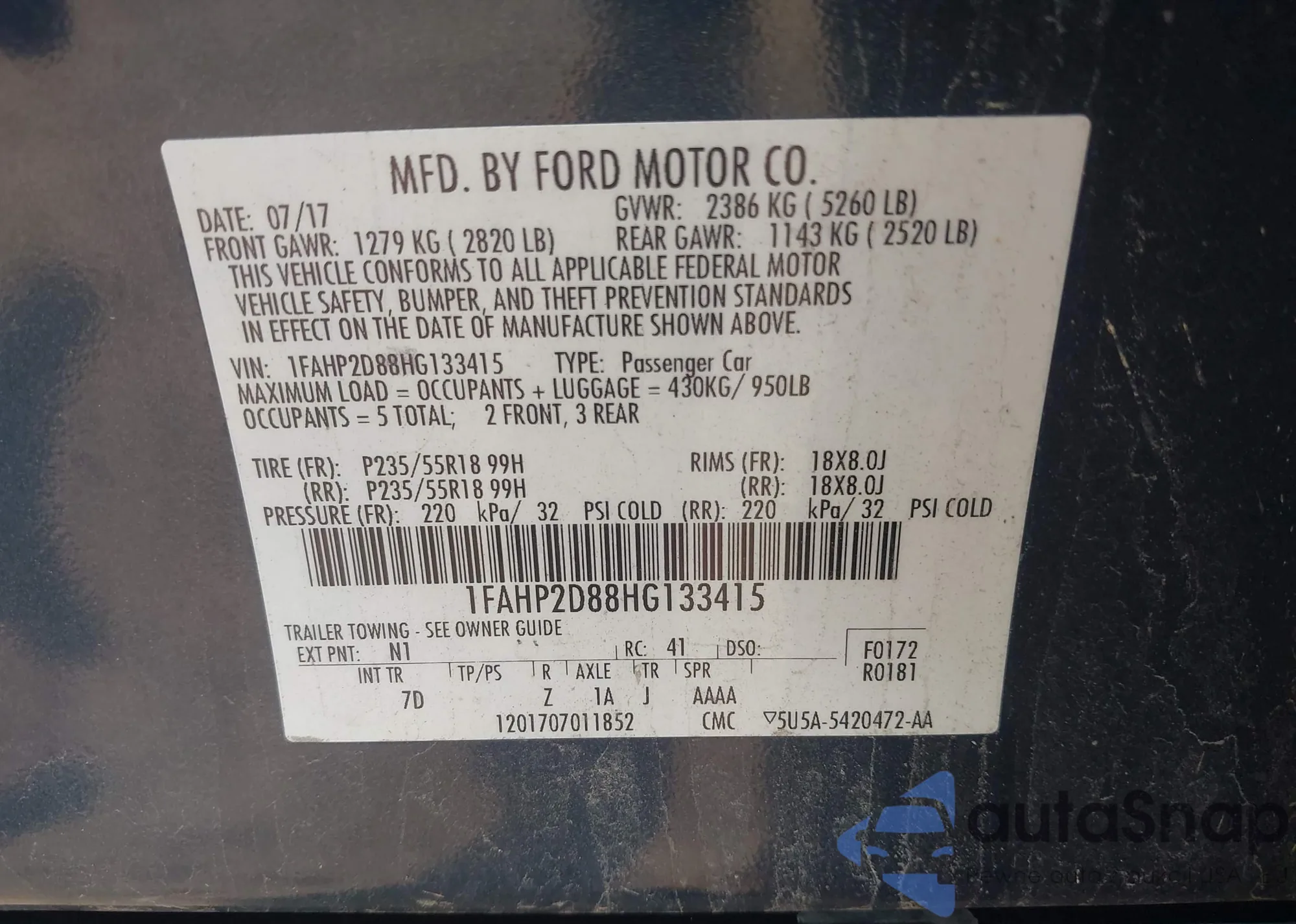LOT: 43041711 VIN: 3FAHP0HA2AR170203