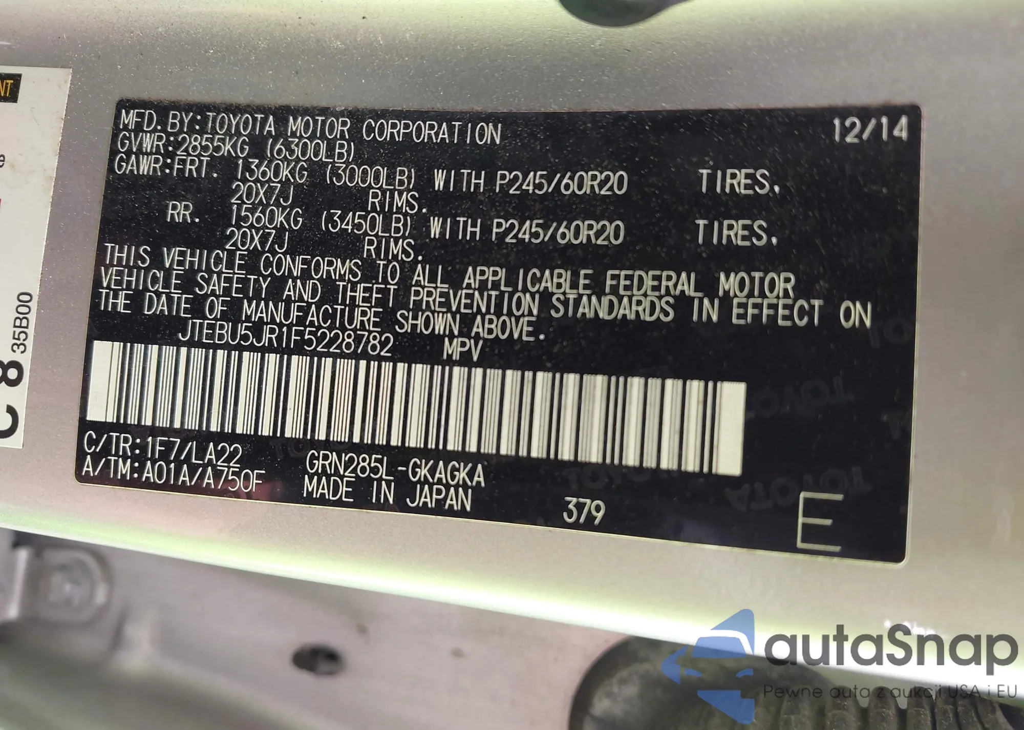 LOT: 42768471 VIN: JTEBU5JR1F5228782