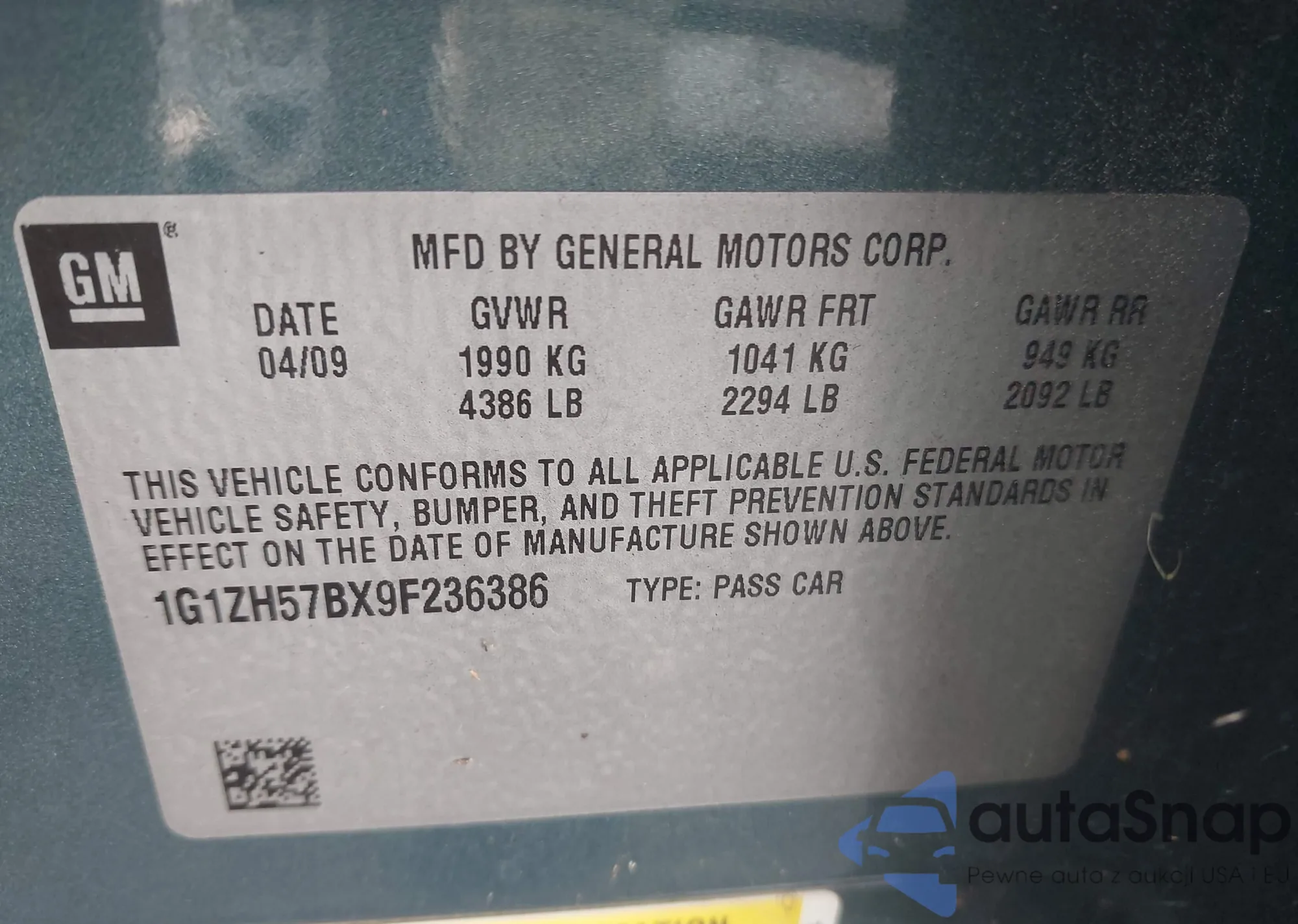 • VIN 1G1ZH57BX9F236386