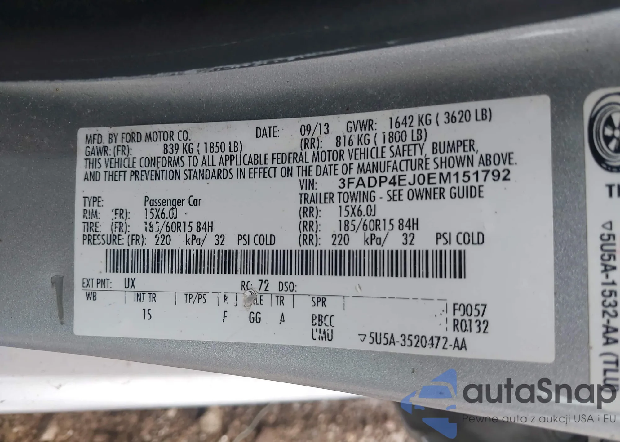 • VIN 3FADP4EJ0EM151792
