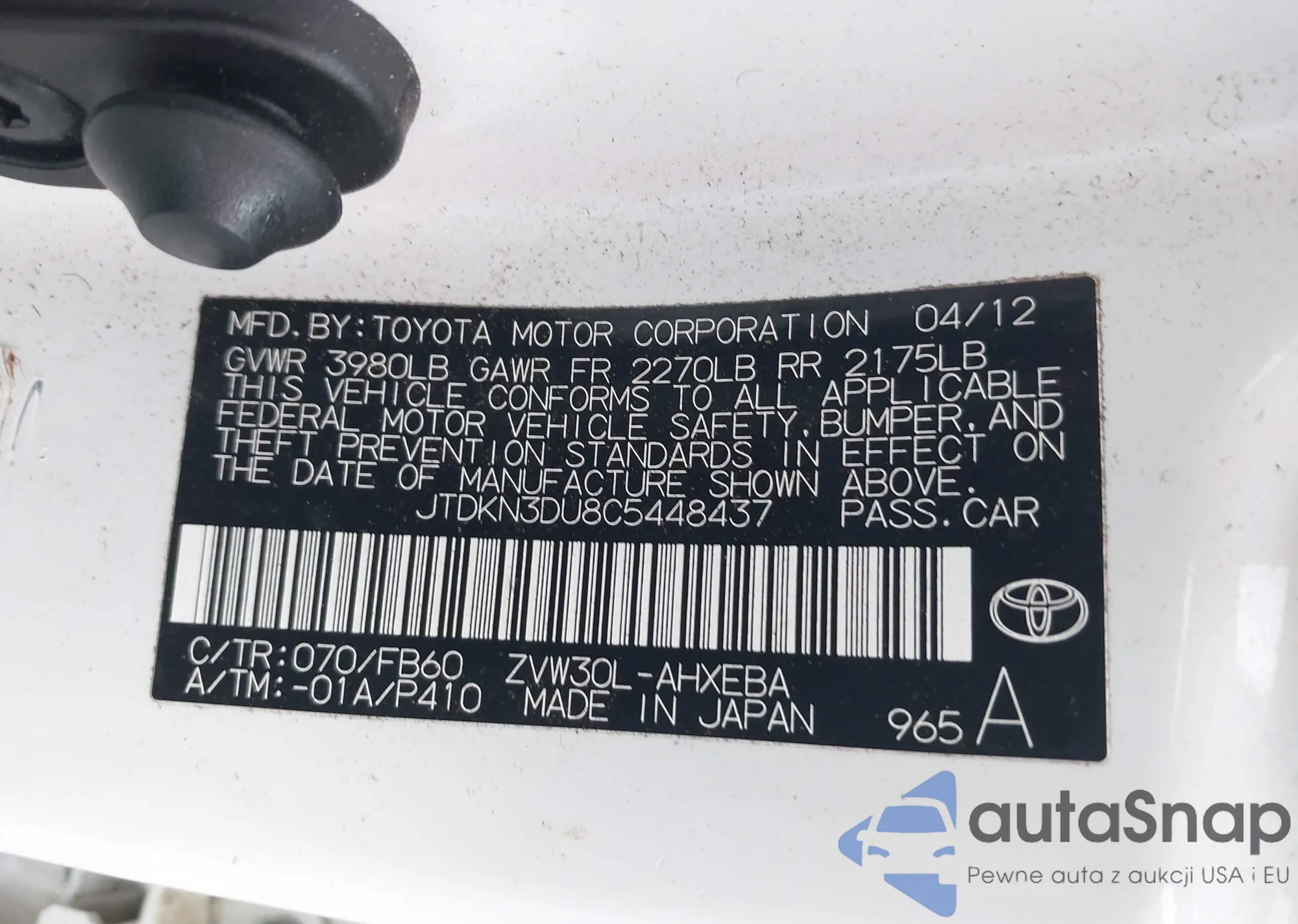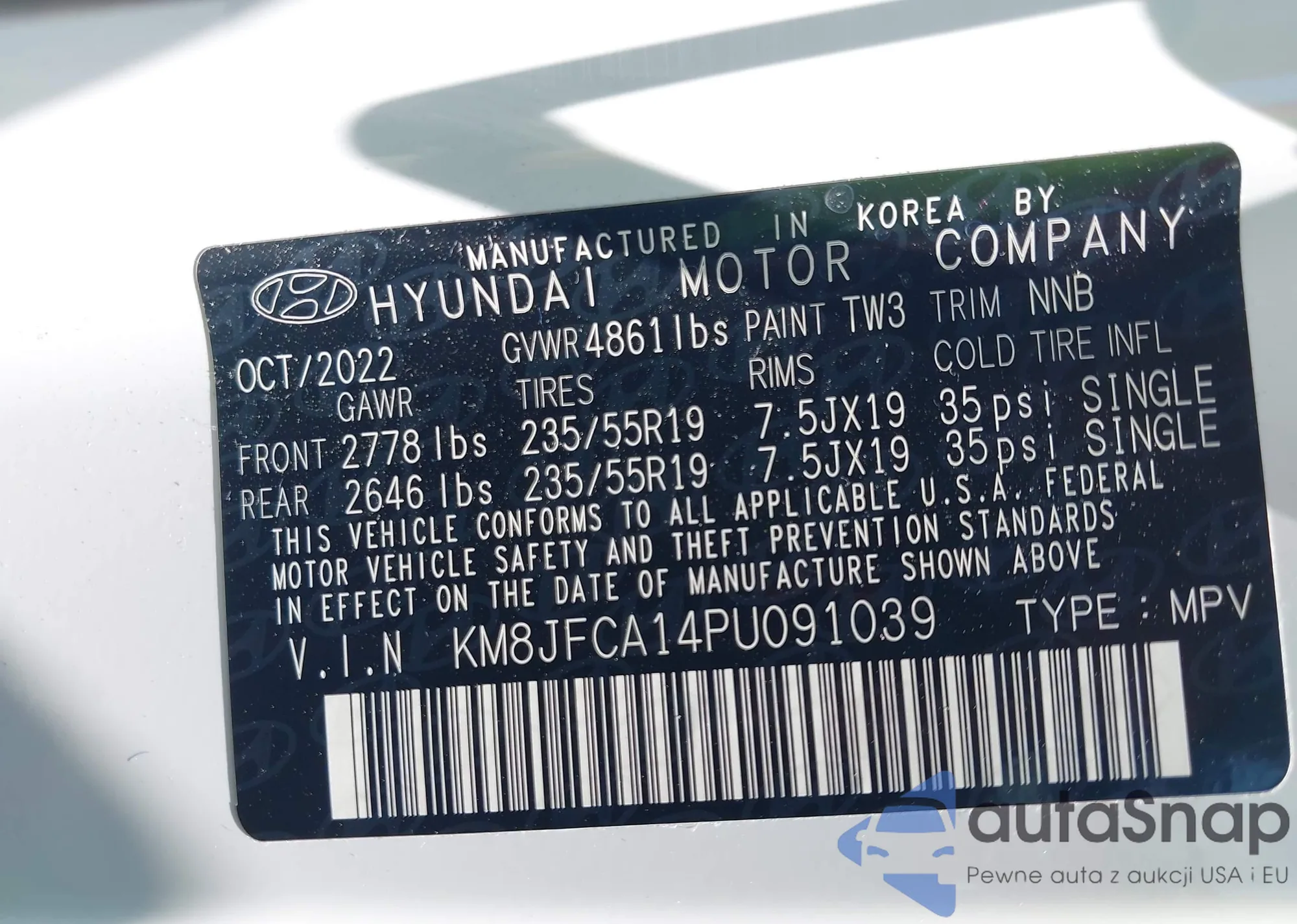 LOT: 42978407 VIN: KM8JFCA14PU091039