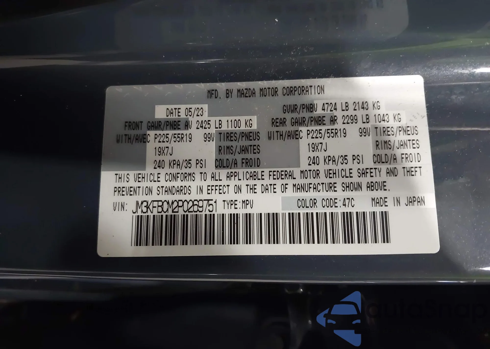 LOT: 42507629 VIN: JM3KE2CY1E0396090