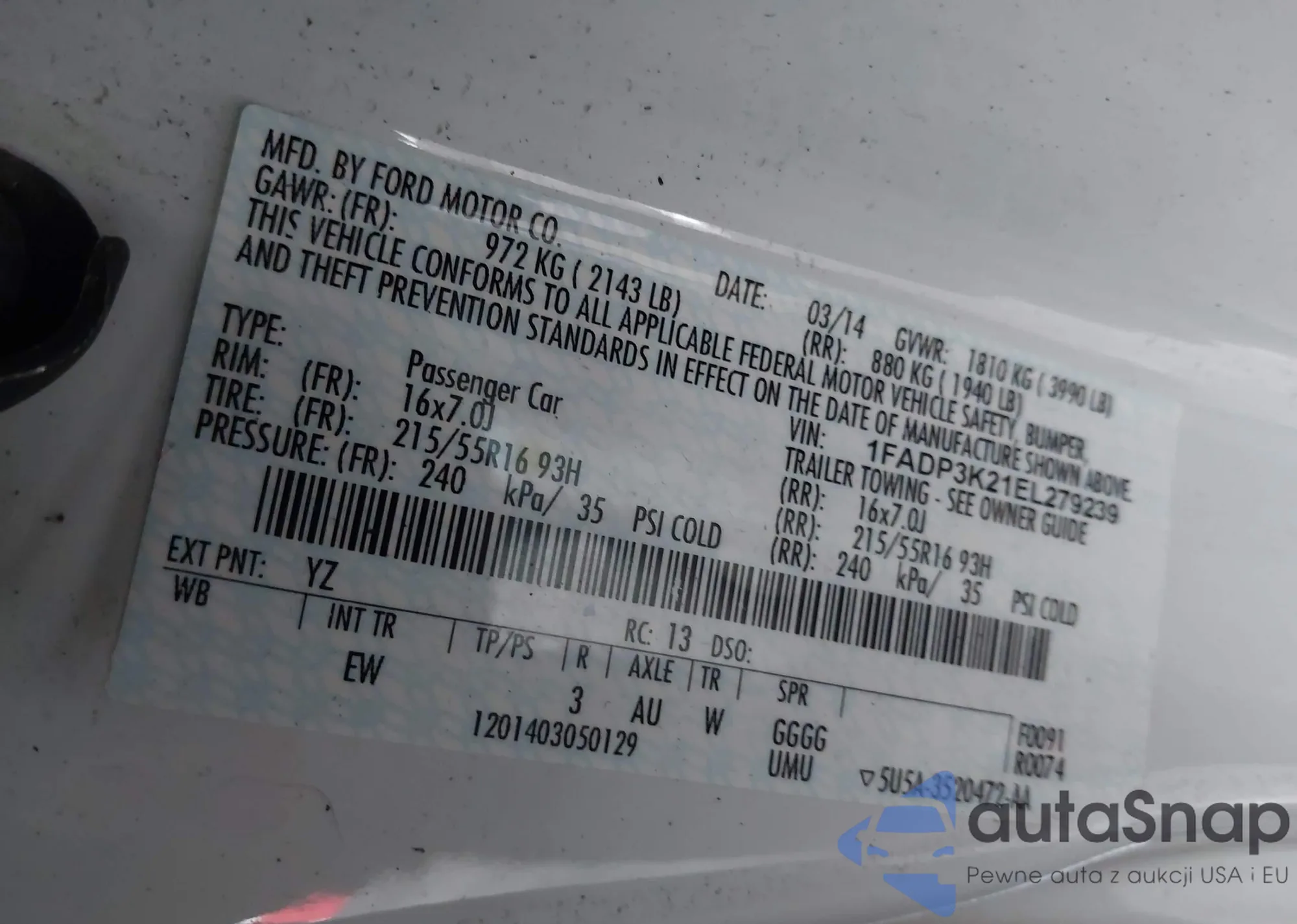 LOT: 42770583 VIN: JTDKN3DU5A0215481